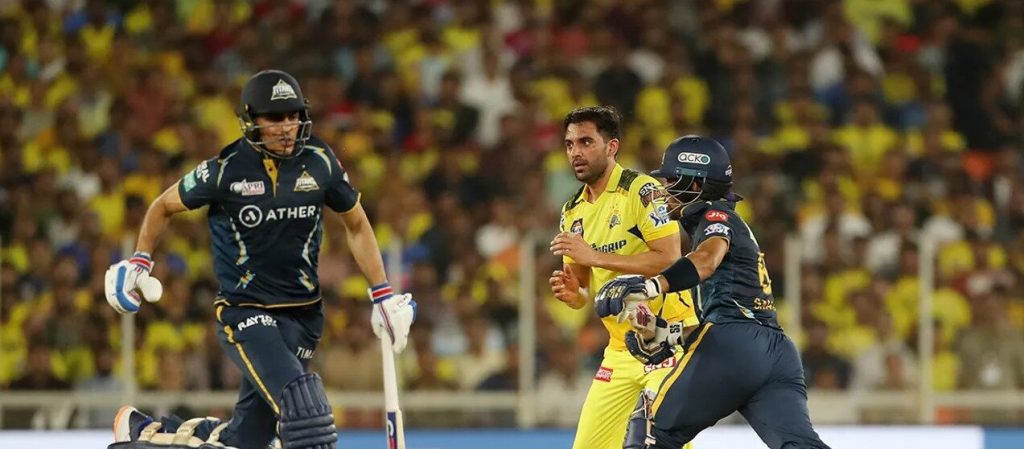 हार्दिक पान्ड्या १२ बलमा २ छक्कासहित २१ रनमा नट आउट रहे । तेस्रो विकेटका लागि हार्दिक र सुदर्शनले ३३ बलमा ८१ रनको साझेदारी गरेका थिए । चेन्नईका मथिसा पाथिरानाले ४ ओभरमा ४४ रन खर्चेर २ विकेट लिए । दीपक चाहर र रविन्द्र जडेजाले समान एक विकेट लिए । तुषार देशपान्डेले ४ ओभरमा ५६ रन बनाए ।