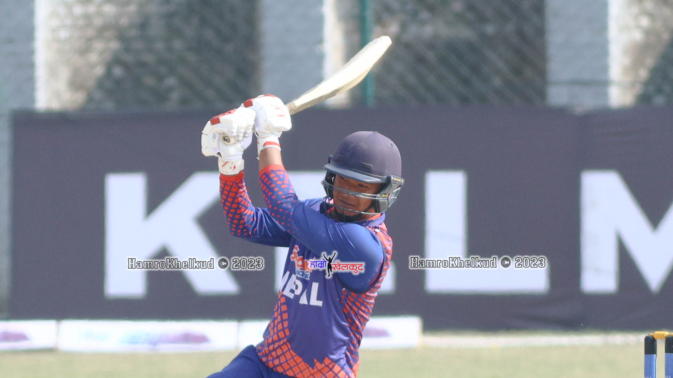 त्यसअघि टस हारेर पहिला ब्याटिङको निम्तो पाएको नेपाल २८.५ ओभरमा १ सय ३५ रनमा अल आउट भएको थियो । नेपालका युवा बायाँ हाते अलराउन्डर कुशल मल्लले २६ बलमा ४ चौका र २ छक्कासहित सर्वाधिक ३७ रनको योगदान दिए । अन्य कुनैपनि नेपाली ब्याटरले राम्रो प्रदर्शन गर्न सकेनन् ।
