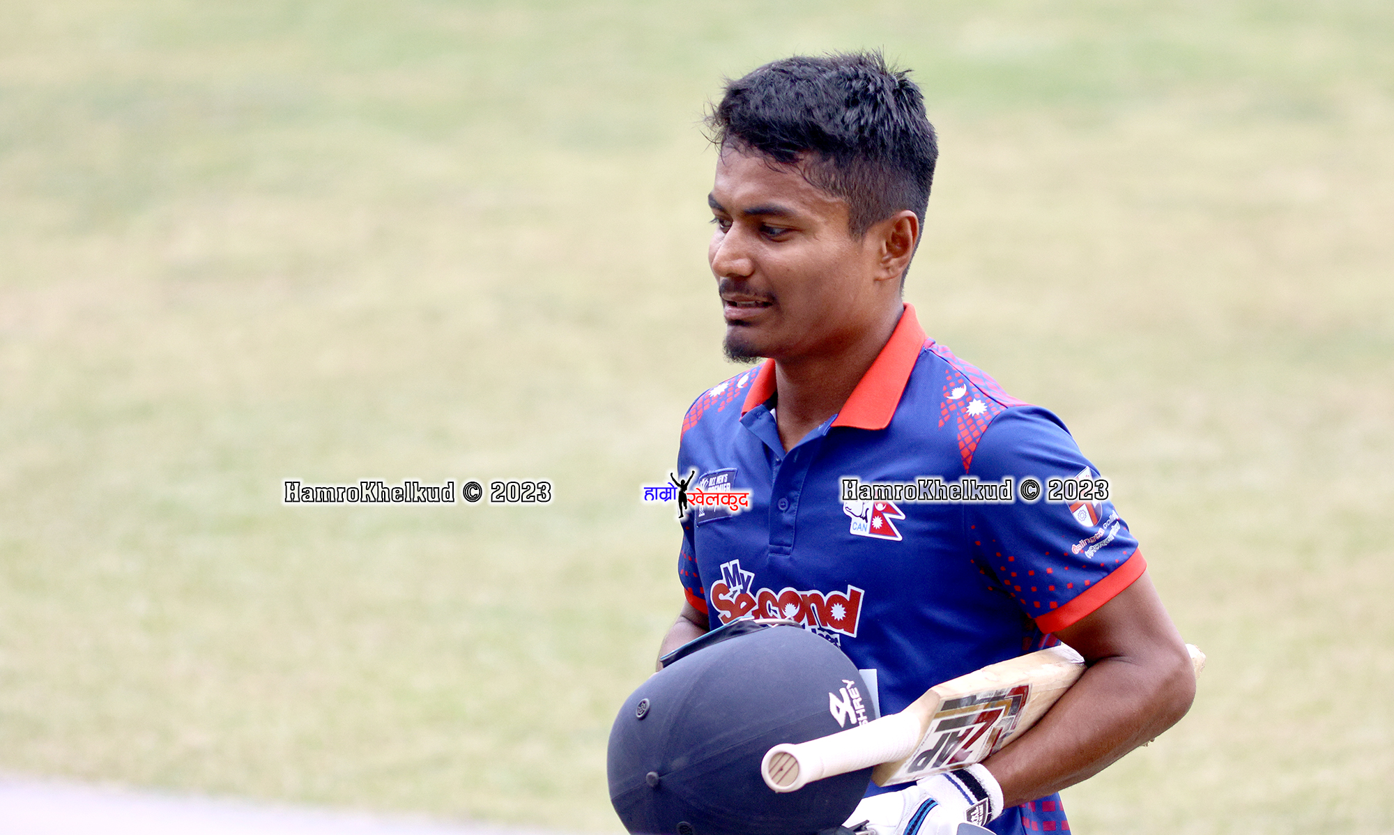 नेपालका ओपनर आसिफ शेख ३६ बलमा ५ चौकासहित २८ रनमा आउट भए । अर्का ओपनर कुशल भुर्तेल २४ बलमा २ चौकासहित १६ रन बनाउँदै क्याच आउट भएका थिए । कुशल तीव्र गतिका बलर शफ्यान शरिफको बलमा स्लिपमा जर्ज मुन्शेबाट क्याच आउट हुन पुगेका थिए । नेपाललाई ओपनर आसिफ शेख र कुशल भुर्तेलले ८.१ ओभरमा ३६ रनको साझेदारी गर्दै औसत सुरुवात दिलाएका थिए । कुशल आउट भएपछि नेपालले लगातार विकेट गुमायो ।