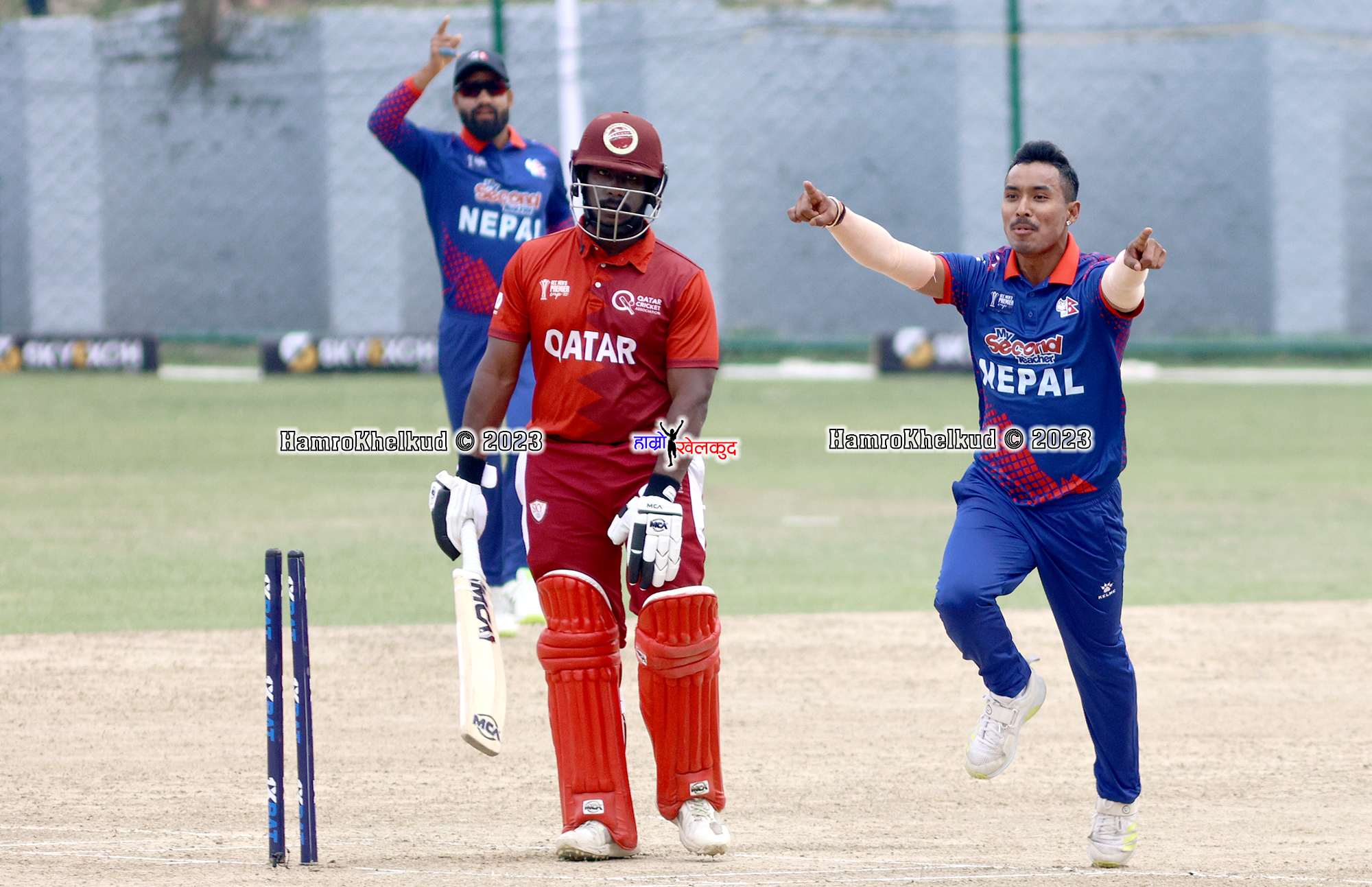 त्यसको एक बलपछि अर्का ओपनर अकिब इलियास अफ साइडको बल एज लागेर विकेटकिपर आसिफ शेखबाट शून्यमा क्याच आउट हुन पुगे । अकिबले वार्मअप खेलमा यसअघिको खेलमा जिम्बावेविरुद्ध शतक हानेका थिए ।