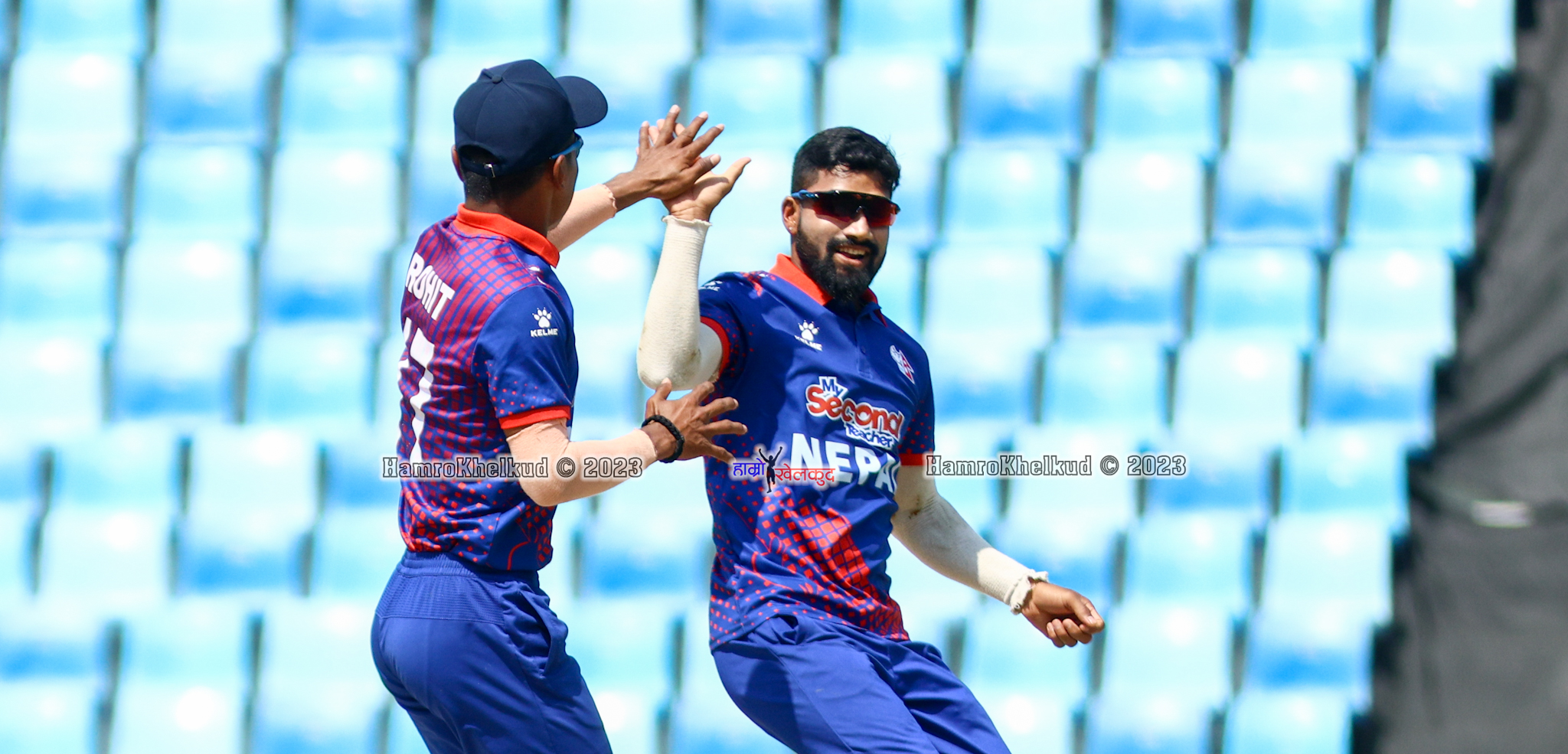 आसिफ शेख (विकेटकिपर), कुशल भुर्तेल, भीम सार्की, रोहित पौडेल (कप्तान), कुशल मल्ल, आरिफ शेख, दीपेन्द्रसिंह ऐरी, गुलशन झा, सोमपाल कामी, करण केसी र सन्दीप लामिछाने ।