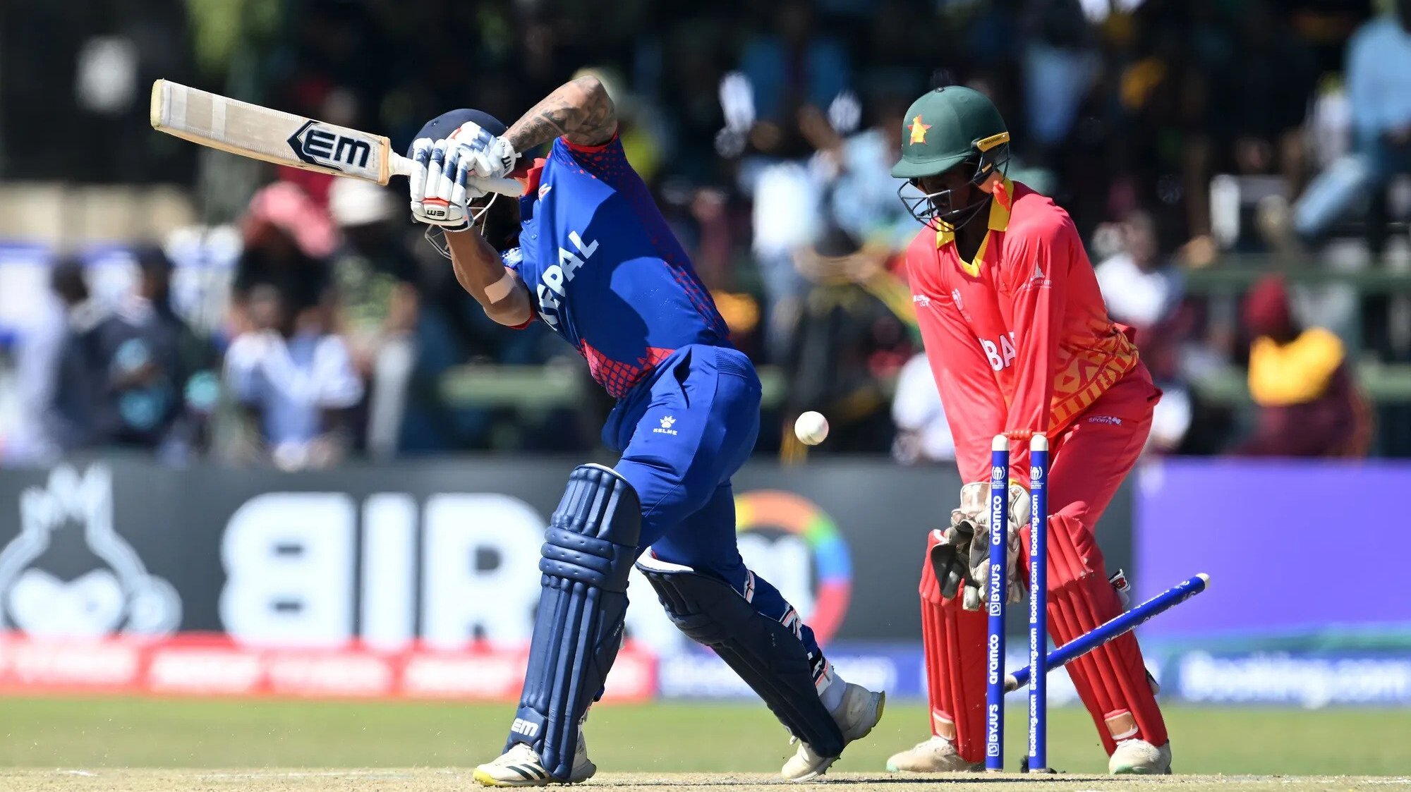 जिम्बावेका रिचर्ड न्गारावाले ९ ओभरमा १ मेडनसहित ४३ रन खर्चेर ४ विकेट लिए । वेलिंग्टन मसाकाड्जाले १० ओभरमा ४२ रन खर्चेर २ विकेट लिए । ब्लेसिङ मुर्जाबानी र टेन्डाई चताराले समान एक एक विकेट लिए । नेपालले दोस्रो खेल मंगलबार अमेरिकासँग खेल्नेछ ।