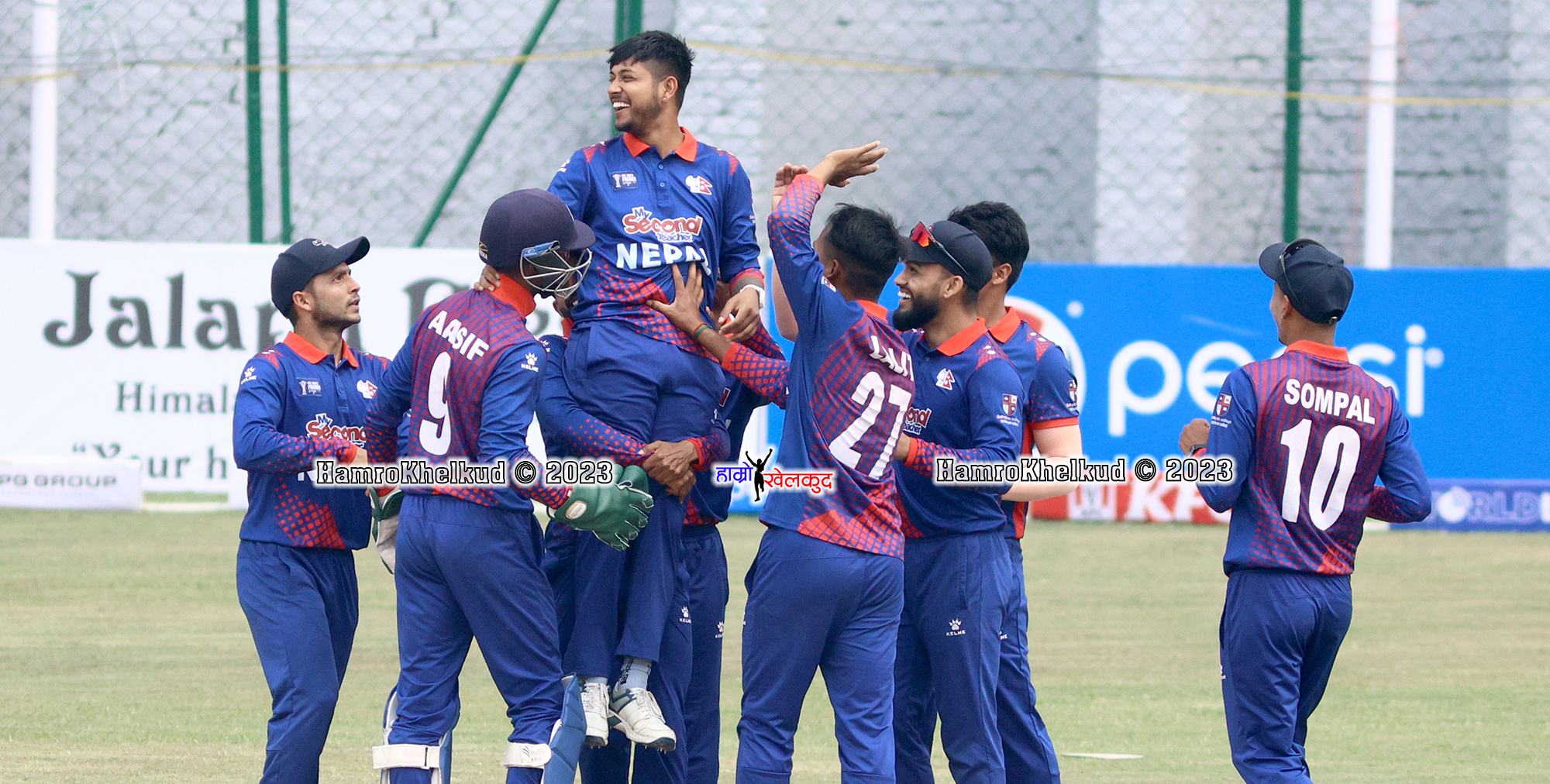 आसिफ शेख (विकेटकिपर), कुशल भुर्तेल, भीम सार्की, रोहित पौडेल (कप्तान), कुशल मल्ल, आरिफ शेख, दीपन्द्रसिंह ऐरी, गुलशन झा, करण केसी, सन्दीप लामिछाने र ललित नारायण राजवंशी ।