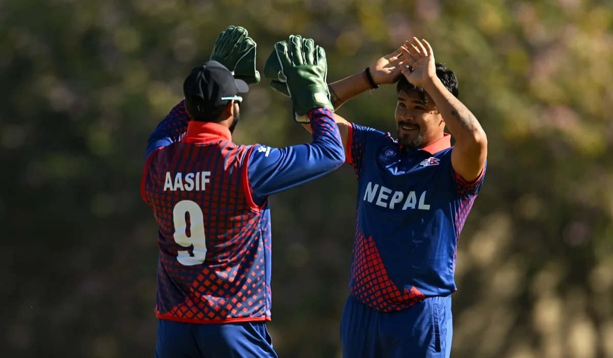 राम्रो लयमा रहेका कुशल भुर्तेल दोस्रो ओभरमै पाँच रनमा बोल्ड आउट भए । भीम सार्की स्कुप खेल्ने धुनमा २ रनमा आउट भए । १२ औं ओभरमा आसिफ शेख सट बलमा २८ रनमा क्याच आउट भए । त्यो समय नेपाल ४८–३ को अवस्थामा पुगेको थियो ।