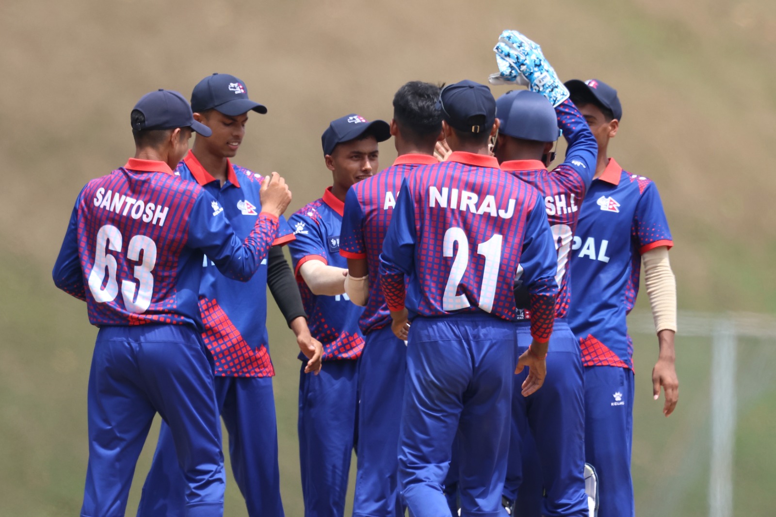 नेपालले निरज कुमार यादव ८, सूर्यांशु कोइराला २६ बलमा ५ चौकासहित २९, विकेटकिपर आषिश लुहार गोल्डेन डक, प्रतिक भट्टराई ४, दीपु कुमार १५ र सन्तोष यादव शून्यमा एलबीडब्लू आउट भएका थिए । मलेसियाका हजिक हैकवाल, मोहम्मद अक्रम, मोहम्मद मुकरी र एरिन अकिलले समान दुई विकेट लिए ।