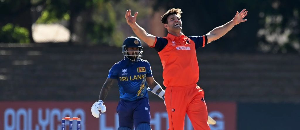 समूह चरणमा वेस्टइन्डिजलाई हराउन नायक बनेका तीव्र गतिका बलर लोगन भान बिकले नेदरल्यान्ड्सलाई ड्रिम सुरुवात दिलाएका थिए । बिकले पहिलो ओभरको पहिलो बलमै श्रीलंकाका ओपनर पाथुम निसांकालाई सकिबबाट क्याच गराए । रायन केलिनले चौथो ओभरको पाँचौं बलमा १० रनमा एलबीडब्लू आउट गरे ।