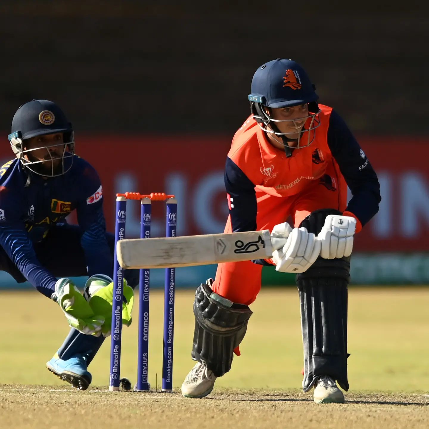 अनुभवी ब्याटर वेस्ली ब्यारेसी ५० बलमा ६ चौका र १ छक्कासहित ५२ रनमा आउट भए । बास डि लिडेले ५३ बलमा ३ चौकासहित ४१ रन बनाए । तीव्र गतिका बलर लाहिरु कुमाराले पहिलो ओभरको दोस्रो बलमै ओपनर विक्रमजित सिंहलाई शून्यमा क्याच आउट गराए । दोस्रो ओभरकै पहिलो बलमा दिलशान मदुशानकाले आक्रामक ब्याटर म्याक्स ओडाउडलाई गोल्डेन डक एलबीडब्लू आउट गरेपछि नेदरल्यान्ड्स १.१ ओभरमा ११–२ को अवस्थामा पुगेको थियो ।