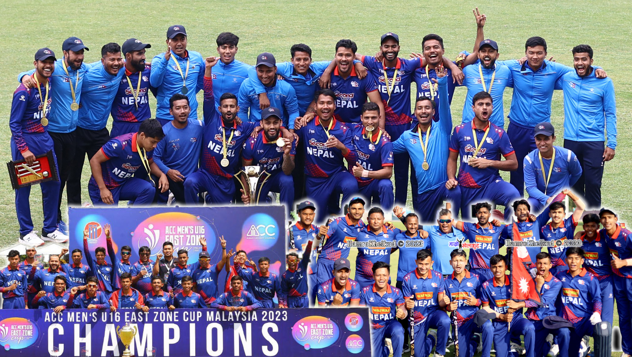 काठमाडौं (हाम्रो खेलकुद) – पछिल्लो चार महिनामा नेपाली क्रिकेटका तीन टोलीले अपराजित बन्दै अन्तर्राष्ट्रिय उपाधि जितेका छन् । नेपाली यू१६ टोलीले मंगलबार एसिसी इस्ट जोन कपको फाइनलमा मलेसियालाई २ सय २१ रनको फराकिलो अन्तरले हराउँदै उपाधि जित्यो ।
