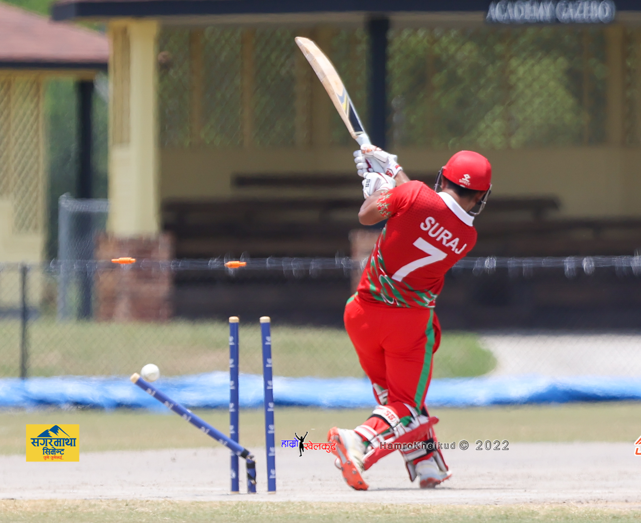जितको लागि २ सय ६० रनको मध्यम विजयी लक्ष्य पछ्याएको ओमान १७.१ ओभरमा ४२ रनमा अल आउट भयो । ओपनर कश्याप प्रजापति १८ र सुरज कुमार १० रनमा आउट भए । घरेलु टोली श्रीलंकाको बलिङ आक्रामण सामु ओमानका ९ खेलाडी दोहोरो अंकमा रन बनाउन सकेनन् । जतिन्द सिंह र सोएब खान शून्यमा आउट भए ।
