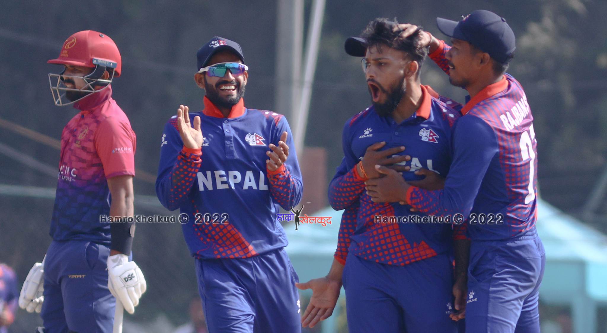 स्पिनर कुशल मल्लको बलमा अर्यांश शर्मा १४ रनमा पवन सरार्फबाट क्याच आउट भए । पवन सराफले अंश टन्डनलाई ३ रनमा एलबीडब्लू आउट गरे । लवप्रीत र एथान डि सोल्झाले ४४ रनको साझेदारी गरेका थिए ।