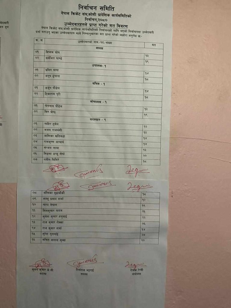 क्रिकेट संघमा १७ कार्यसमिति सदस्य रहेपनि हाल उपाध्यक्ष राजबाबु श्रेष्ठ र सचिव अशोकनाथ प्याकुरेलको राजिनामासँगै १५ सदस्यले मात्र केन्दीय चुनावमा मतदान गर्नेछन् । क्यान निर्वाचनमा कुल ८८ मत रहेकोमा २ कार्यसमिति पद रिक्त हुँदा ८६ मत हुनेछ ।