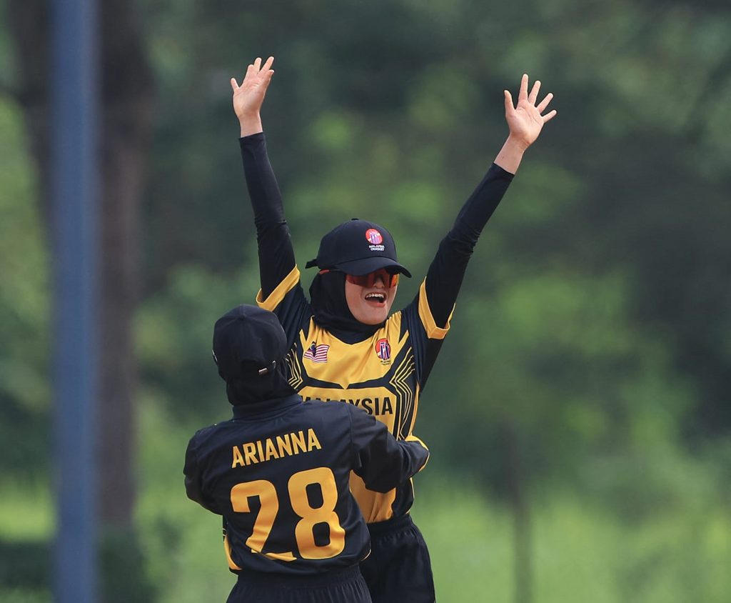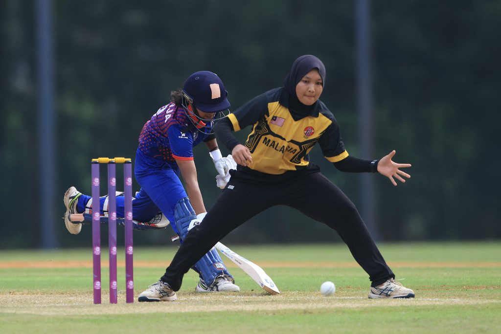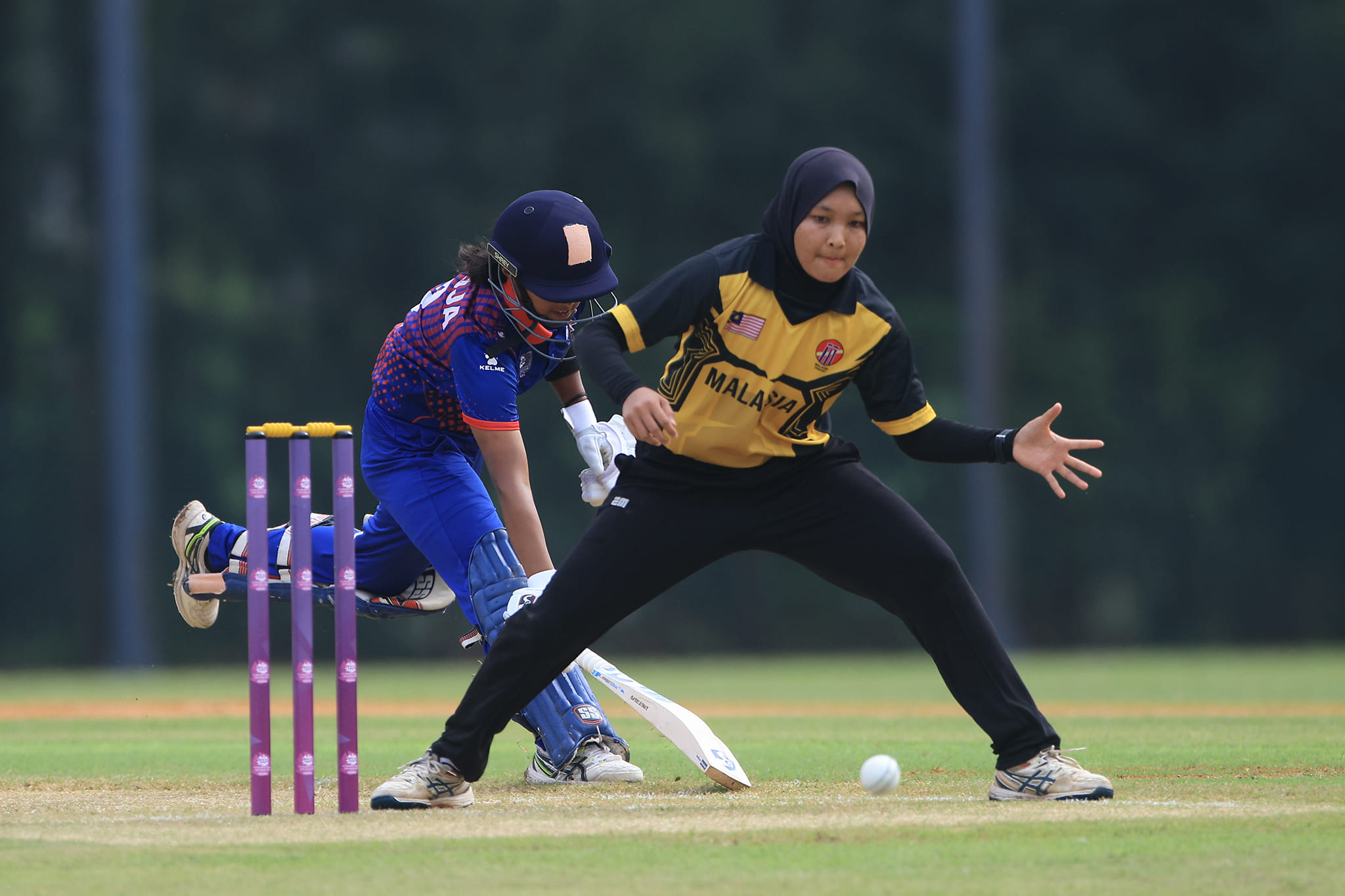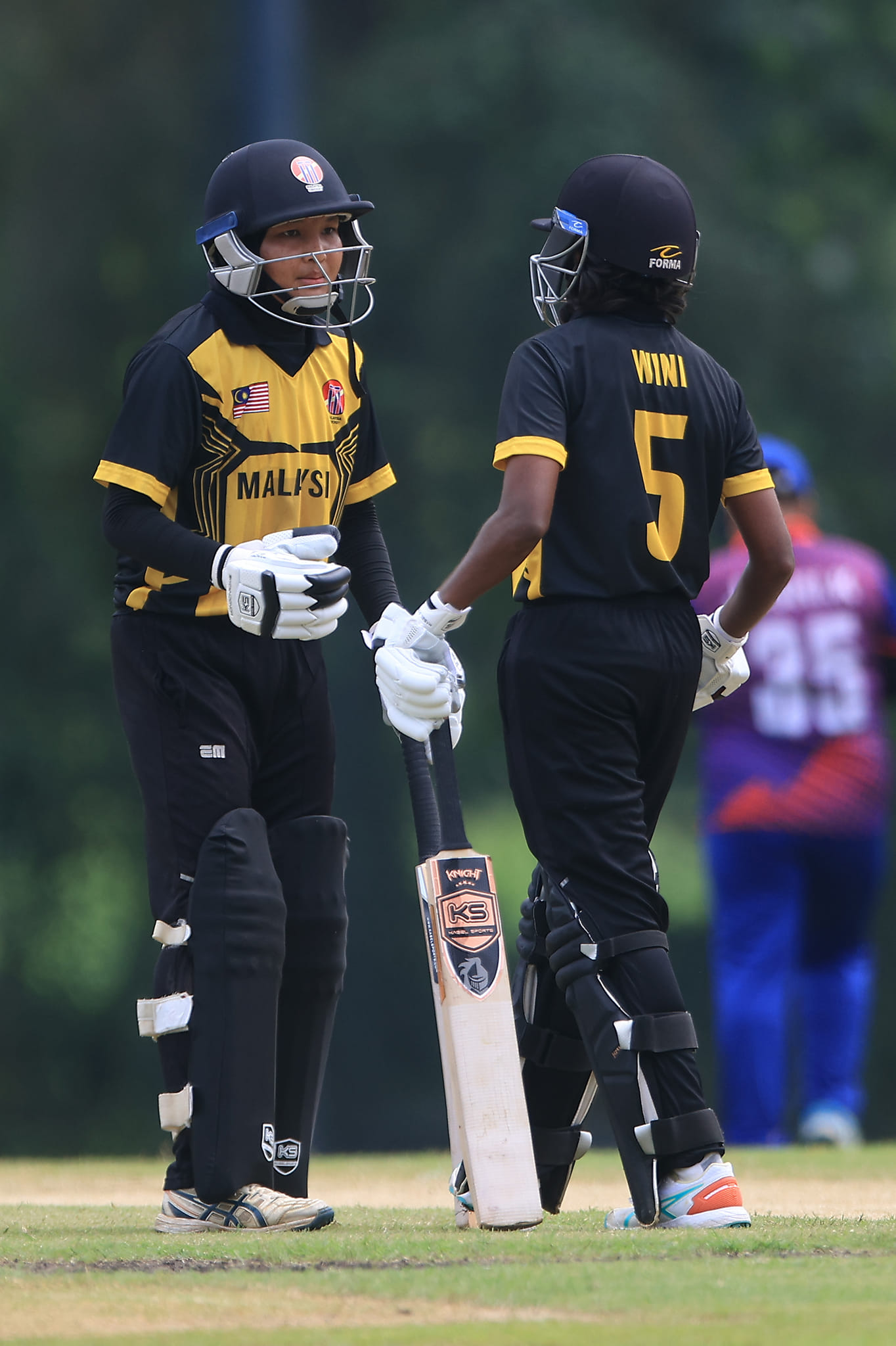 कप्तान रुविना क्षेत्री बेलबासे १३ बलमा २ चौकासहित १२ रनमा आउट भइन् । मलेसियाको ऐना हामिजा ४ ओभरमा १ मेडनसहित १४ रन खर्चेर २ विकेट लिइन् । महिराह इजाती, ऐश्या एलिसा र निक नुरले एक एक विकेट लिए ।