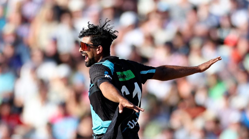 न्युजिल्यान्डका कायल जेमिसनले ४ ओभरमा २३ रन खर्चेर ३ विकेट लिए । स्पिनर ईश सोधीले ४ ओभरमा ३३ रन खर्चेर ३ विकेट लिए । कप्तान टिम साउथीले ३.३ ओभरमा ३० रन खर्चेर २ विकेट लिए । म्याट हेनरी र मिचेल सान्टनारले एक एक विकेट लिए ।