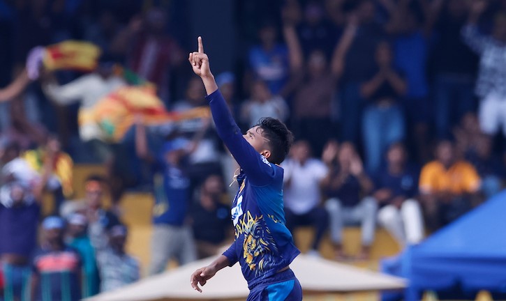 उनले ३६ औं ओभरको अन्तिम बलमा हार्दिक पान्ड्यालाई विकेटकिपर कुशल मेन्डिसबाट पाँच रनमा क्याच आउट गराउँदै पाँच विकेट पूरा गरे । अम्पायरले आउट नदिएपनि श्रीलंकाले रिभ्यु लिँदै हार्दिकलाई पेभेलिएन फर्काएका थिए । हार्दिक एज लागेर आउट हुन पुगेका थिए ।