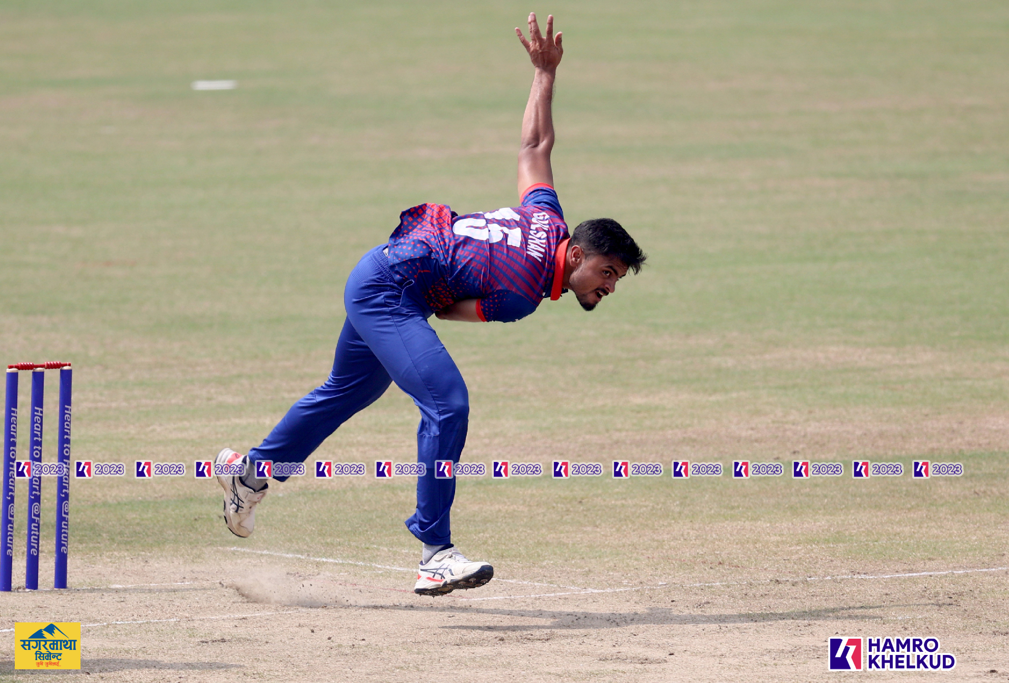 करण केसीले २ ओभरमा १ मेडनसहित १ रन खर्चेर २ विकेट लिए । करणले उक्त एक रन वाइडको रुपमा दिएका थिए । अभिनाश बोहराले २ ओभरमा १ मेडनसहित २ रन खर्चेर २ विकेट लिए । जसमा एक वाइड सामेल थियो । सन्दीप लामिछानेले २ ओभरमा १ मेडनसहित ७ रन खर्चेर २ विकेट लिए । दीपेन्द्रले २ ओभरमा २ रन खर्चेर १ विकेट लिए । दीपेन्द्र र सन्दीपले एक एक वाइड फ्याँलेका थिए ।
