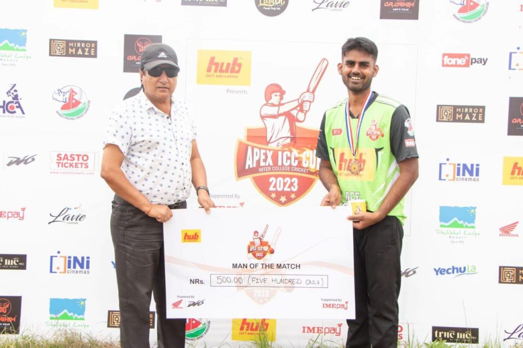 काठमाडौं (हाम्रो खेलकुद) – तल्लो मुलपानी क्रिकेट मैदानमा जारी एपेक्स आइसिसी कपमा आइतबार एसिइ कलेज ३ रनले विजयी भएको छ । जितको लागि १ सय १८ रनको विजयी लक्ष्य पछ्याएको इस्लिङटन कलेजले निर्धारित २० ओभरमा ९ विकेट गुमाउँदै १ सय १४ रन बनायो ।