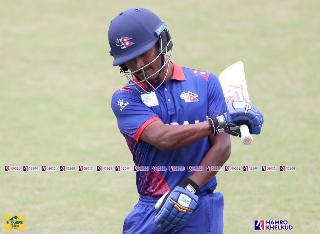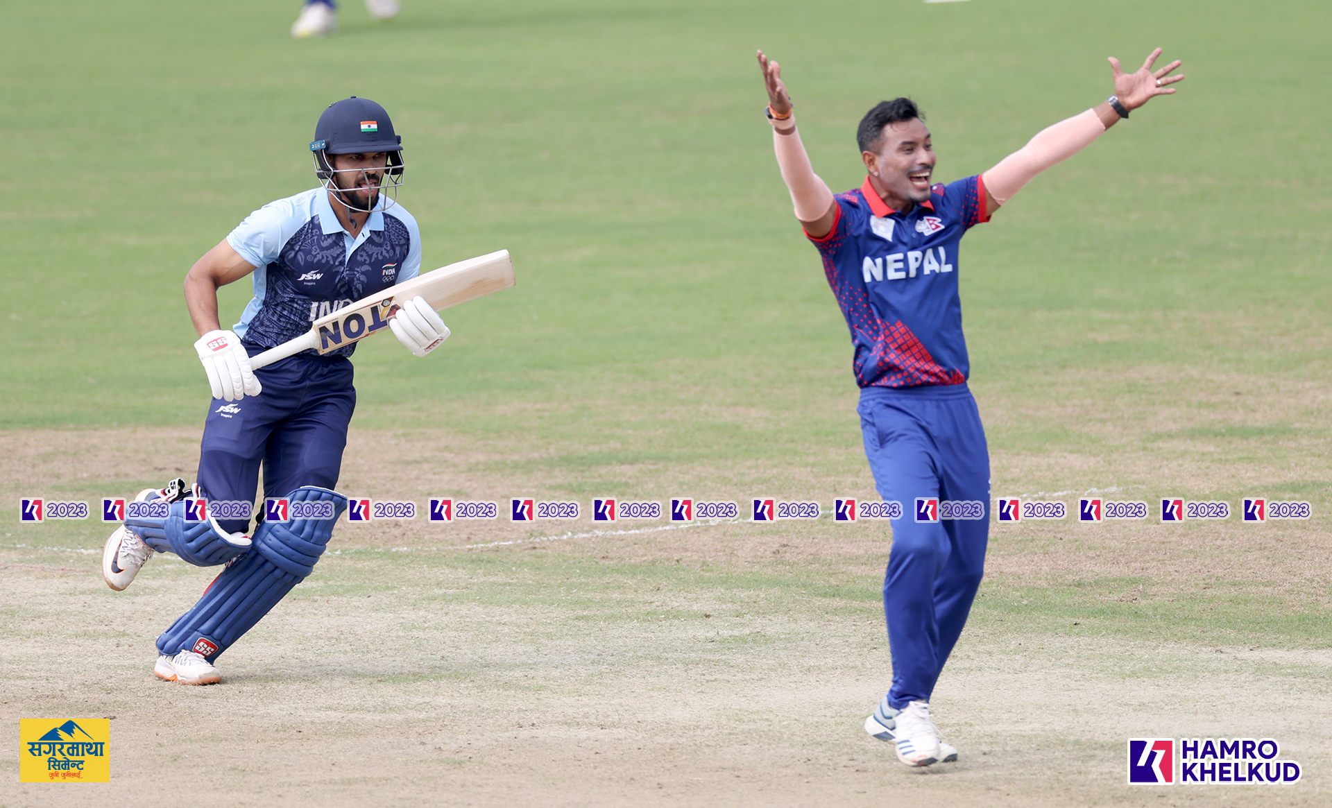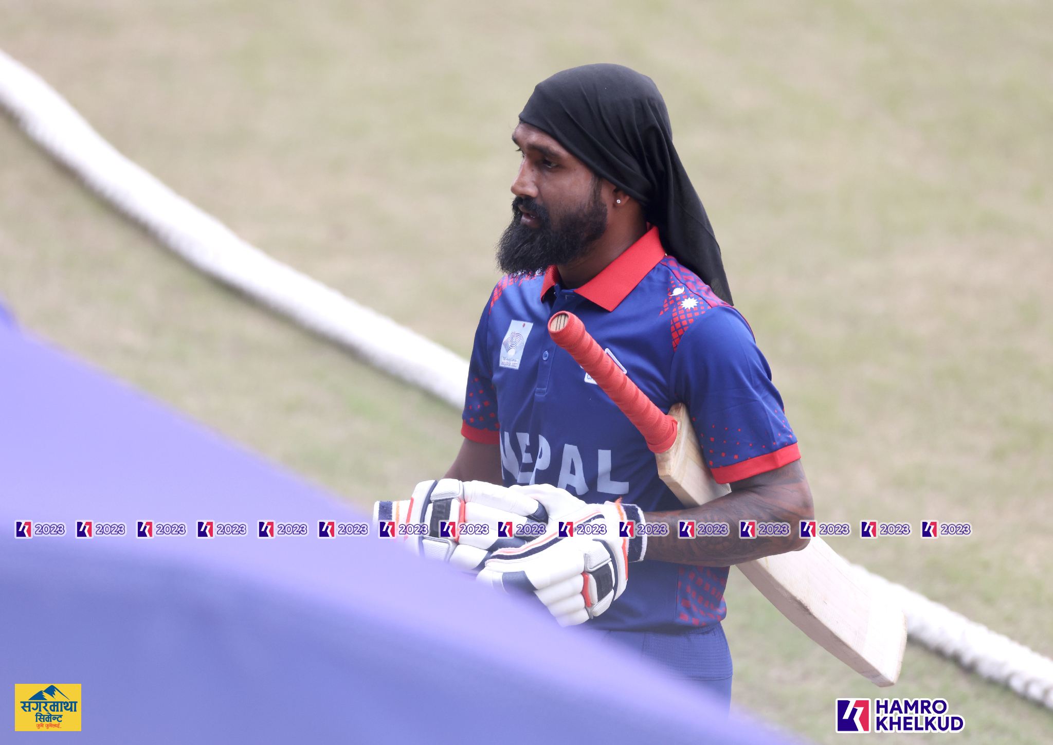 मल्ल चौथो बलमा क्याच आउट हुँदा रोहित अन्तिम बलमा एलबीडब्लू आउट भए । प्रमुख ब्याटर एकै ओभरमा आउट हुँदा नेपाल दबाबमा परेको थियो ।
