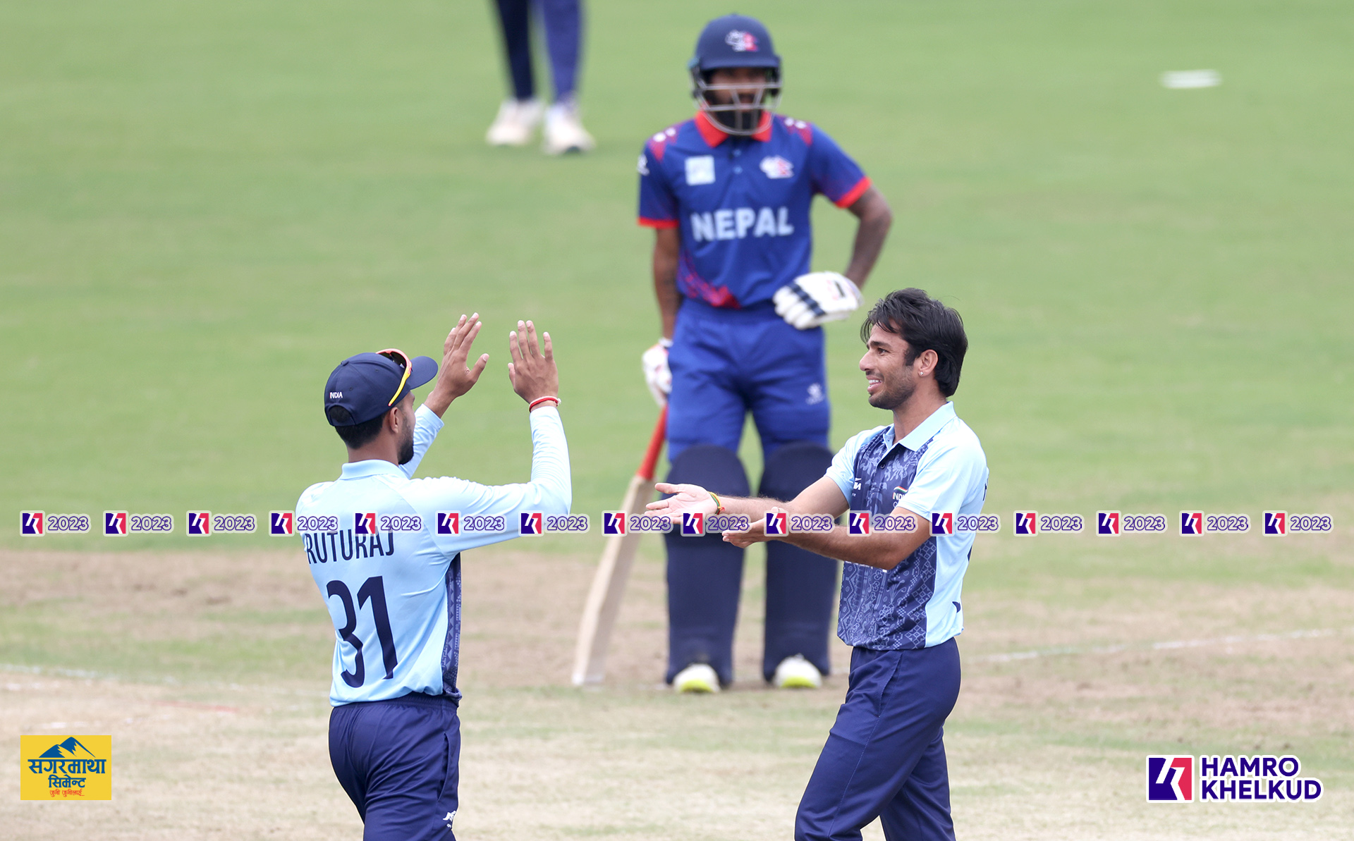 दीपेन्द्र १५ बलमा ४ छक्कासहित ३२ रनमा आउट भए । सन्दीप जोरा १२ बलमा १ चौका र ३ छक्कासहित २९ रनमा आउट भए । दीपेन्द्र १५ औं ओभरको दोस्रो बलमा र जोरा १६ औं ओभरको चौथो बलमा क्याच आउट भएका थिए ।