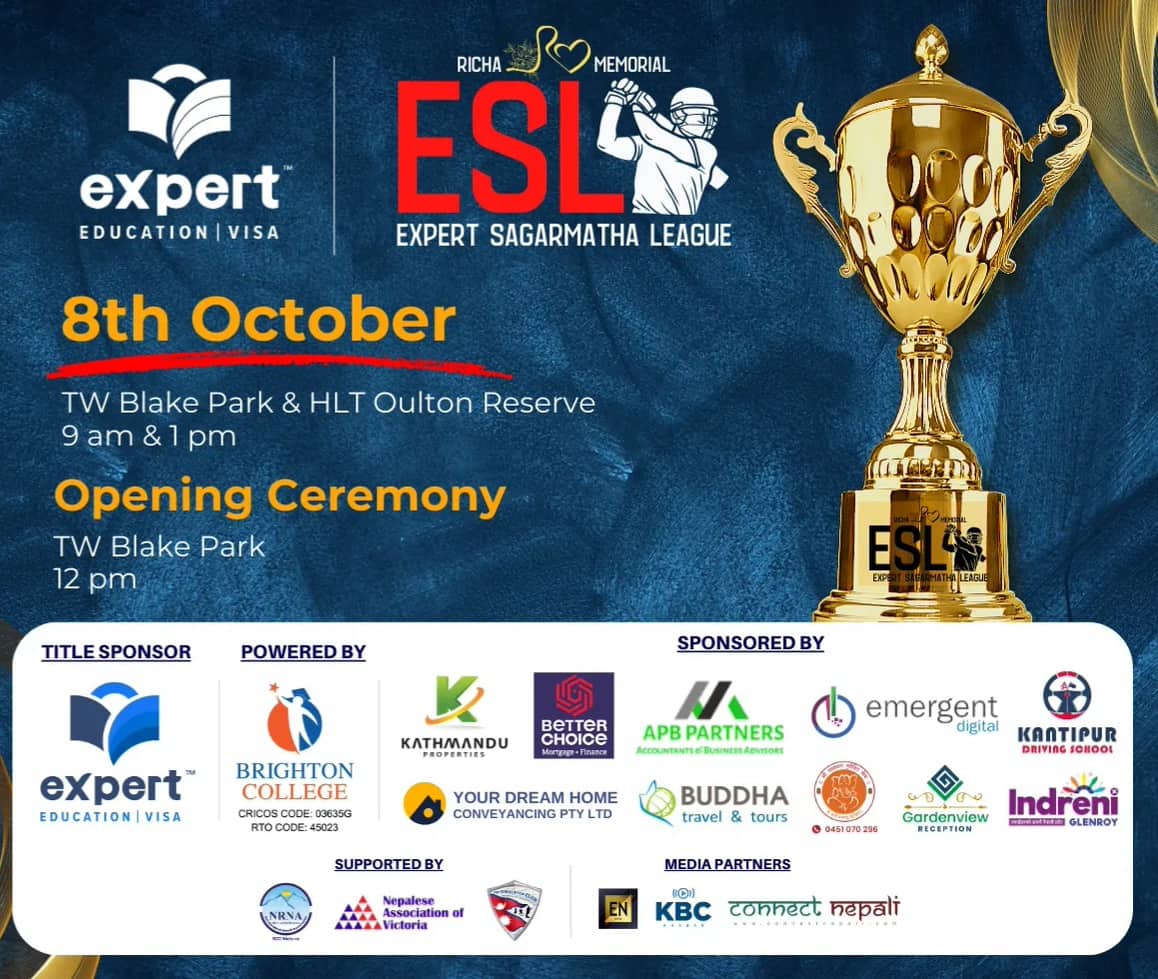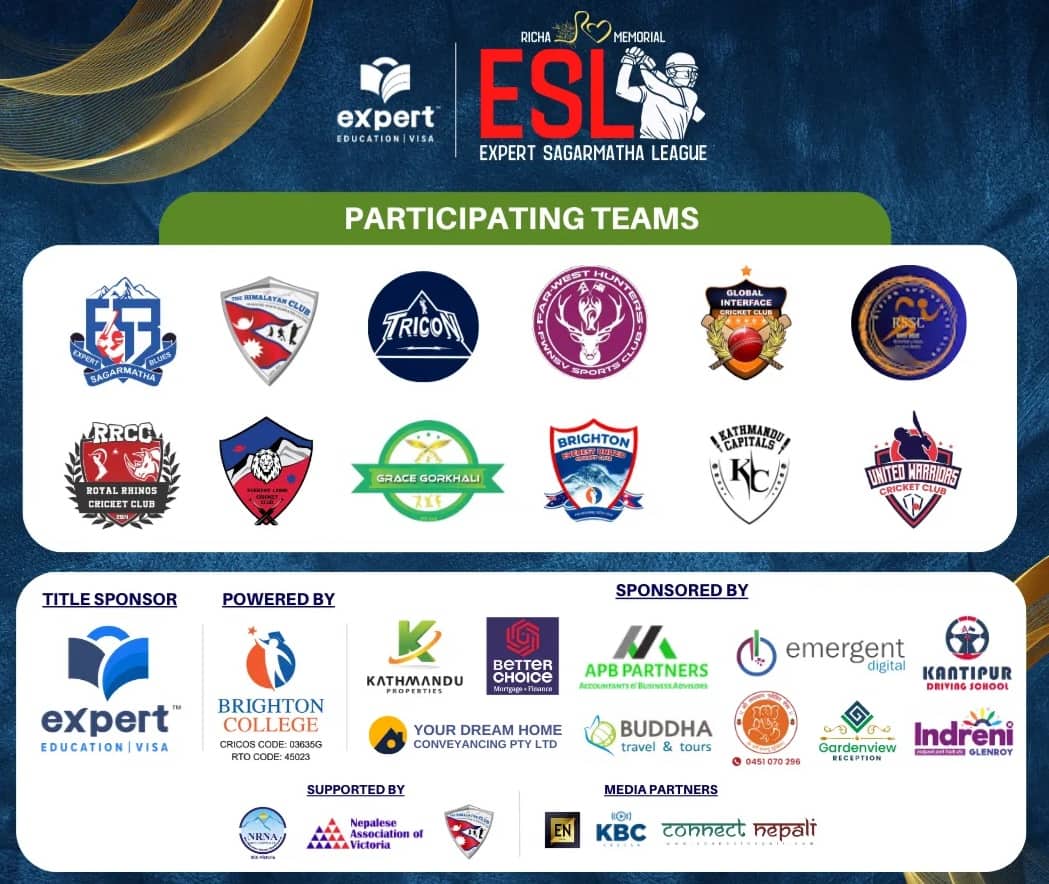 काठमाडौँं (हाम्रो खेलकुद) – तेस्रो संस्करणको रिचा मेमोरियल एक्स्पर्ट सगरमाथा लिग अर्को सातादेखी अष्ट्रेलियामा सुरु हुने भएकोछ । मेलबर्नमा हुने उक्त प्रतियोगिता आगमी आइतबार देखी सुरु हुनेछ । प्रतियोगिता विजेताले ४ लाख ६६ हजार नेपाली रुपैयाँ (३५ सय डलर) प्राप्त गर्नेछन् ।