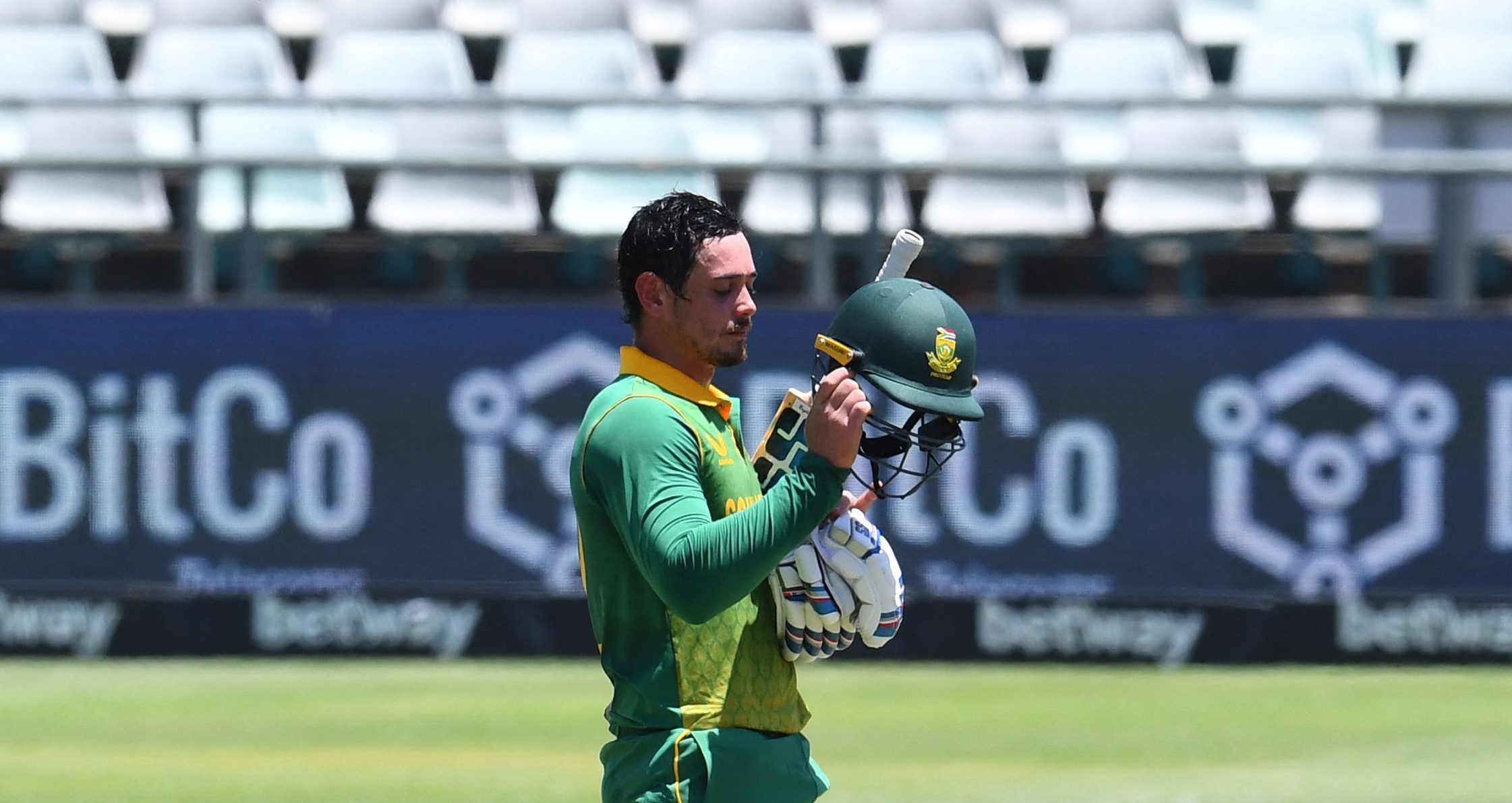 यसअघि उनले श्रीलंकाविरुद्ध पनि १ सय रनको शतकीय इनिङ खेलेका थिए । पहिलो विकेटका लागि डि कक र कप्तान टेम्बा बभुमाले १९.४ ओभरमा १ सय ८ रनको शतकीय साझेदारी गरेका थिए । बभुमा ५५ बलमा २ चौकासहित ३५ रनमा आउट भए । रास्सी भान डर डुसेन ३० बलमा २ चौकासहित २६ रनमा आउट भए ।