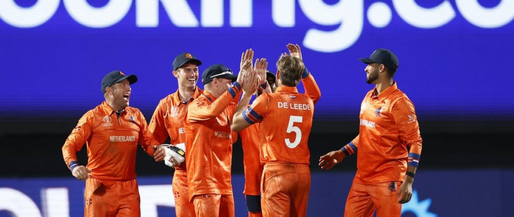 त्यसअघि वर्षाका कारण ४३ ओभरमा घटाइएको खेलमा नेदरल्यान्ड्सले ८ विकेट गुमाउँदै २ सय ४५ रन बनाएको थियो ।नेदरल्यान्ड्सको जितमा कप्तान स्कट एडवार्ड्सले ६९ बलमा १० चौका र १ छक्कासहित ७८ रनको अविजित कप्तानी इनिङ खेलेका थिए । आर्यन दत्तले ९ बलमा ३ छक्कासहित २३ रन बनाउँदै नआउट रहे ।