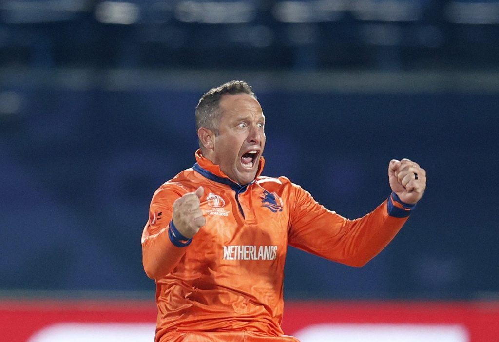 नेदरल्यान्ड्सका स्पिनर रोलेफ भान मर्वेले ९ ओभरमा ३४ रन खर्चेर २ विकेट लिए । पल भान मार्केनले ९ ओभरमा ४० रन खर्चेर २ विकेट लिए । बास डि लिडले ८ ओभरमा ३६ रन खर्चेर २ विकेट लिए । कोलिन एकरम्यानले ३ ओभरमा १६ रन खर्चेर १ विकेट लिए । लोगन भान बिकले ८.५ ओभरमा ६० रन खर्चेर ३ विकेट लिए ।
