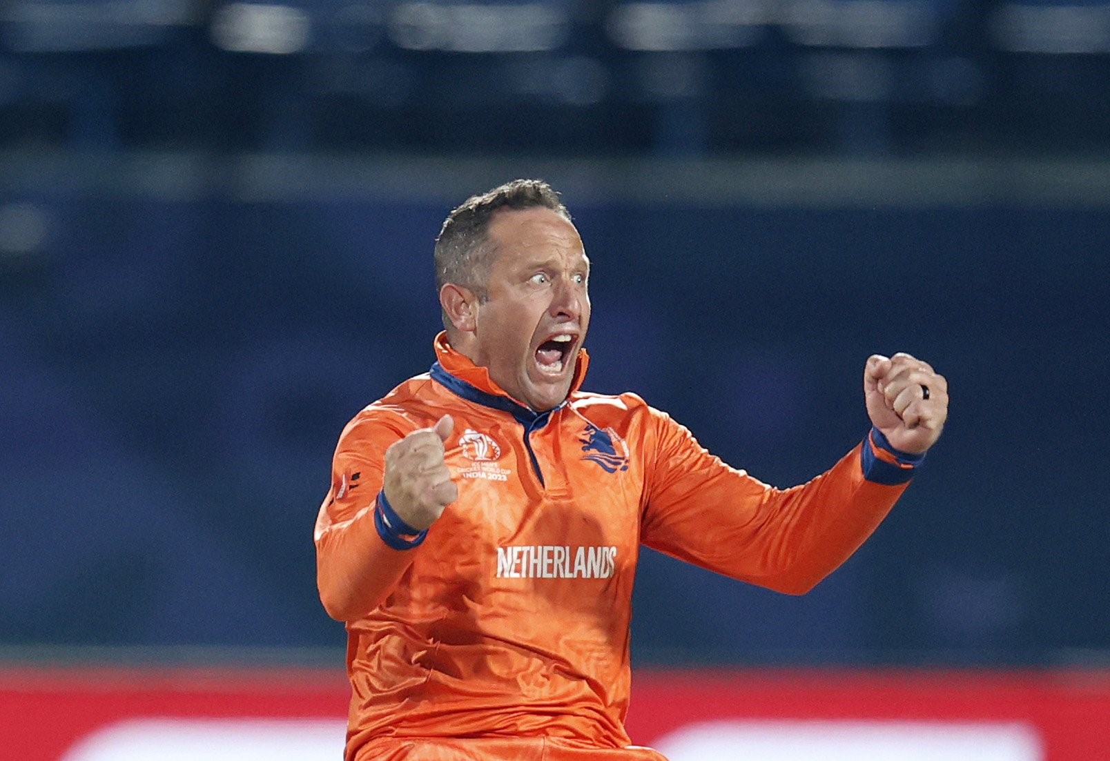 बास डे लेडाले २ रन मात्र बनाउन सके। साइब्रान्ड अंगलब्रेक्तले १९ रन बनाउँदा लोगन भ्यान बिकले १० रन बनाए । रोलाफ भ्यान डर मर्वाले १९ बलमा ३ चौका र १ छक्कासहित तल्लोक्रममा महत्वपूर्ण २९ रन जोडेका थिए ।