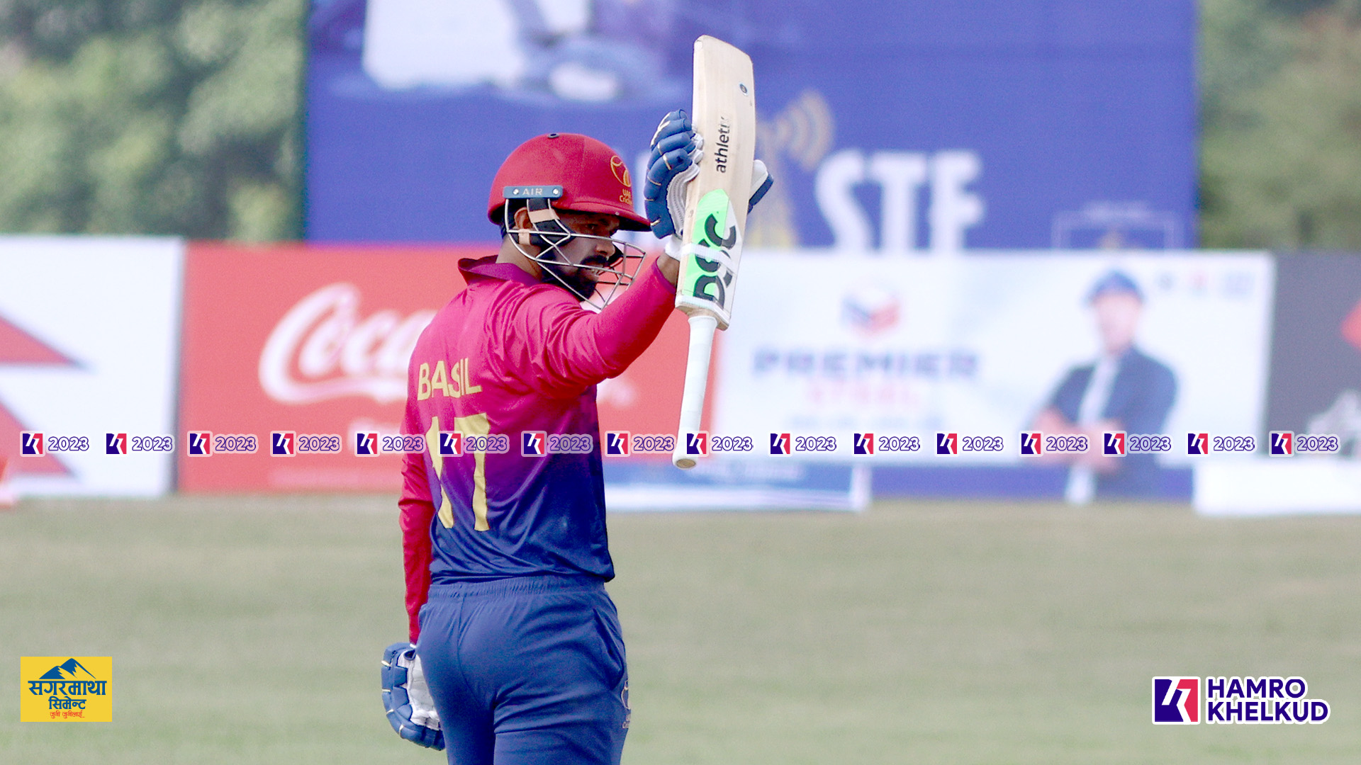 काठमाडौं (हाम्रो खेलकुद) – मध्यक्रमका युवा ब्याटर बासिल हामिदको अर्धशतकमा युएईले त्रिकोणात्मक टि२० आई सिरिजमा घरेलु टोली नेपाललाई १ सय ४१ रनको मध्यम लक्ष्य दिएको छ । माथिल्लो मुलपानी क्रिकेट मैदानमा टस हारेर पहिला ब्याटिङको निम्तो पाएको युएईले निर्धारित २० ओभरमा ७ विकेट गुमाउँदै १ सय ४० रन बनायो ।