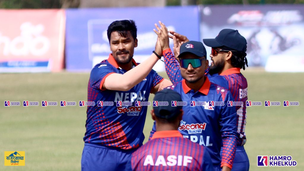 युएईका लागि डेब्यू खेल खेलेका ओपनर खालिद शाह ठूलो सटको धुनमा मिडअफमा कप्तान रोहित पौडेलबाट क्याच आउट हुन पुगेका थिए । उनले ६ बल खेल्दा खाता खोल्न सकेनन् ।