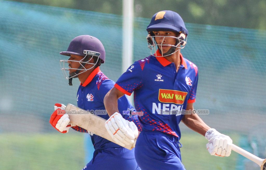 दोस्रो विकेटका लागि अर्जुन कुमाल र आकाश त्रिपाठीले १ सय ६२ बलमा १ सय ८९ रनको सानदार शतकीय साझेदारी गर्दै विशाल योगफलको आधार तय गरका थिए ।