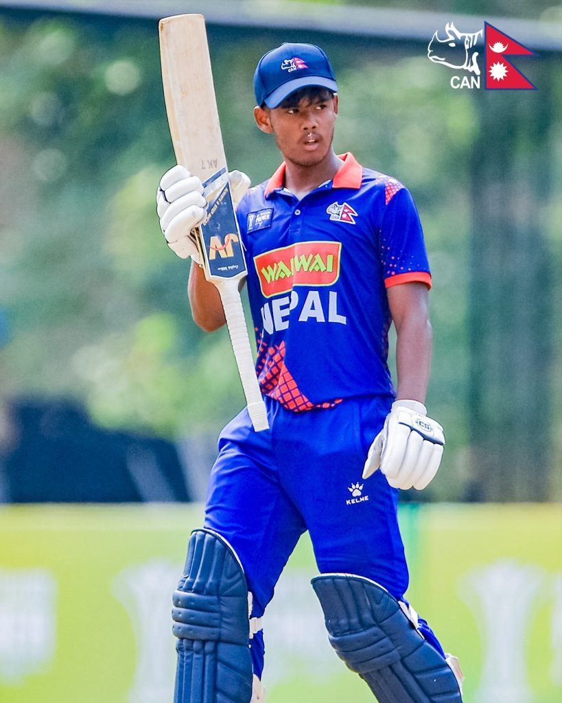 आकाशले ९८ बलमा ६ चौका र २ छक्कासहित ८९ रन बनाउँदै आउट भए । दीपक डुम्रे १४ र मिलन बोहरा ९ रनमा आउट भए । नेपालका दीपेश कँडेलले १४ र विशाल विक्रम केसीले २४ रन बनाए ।