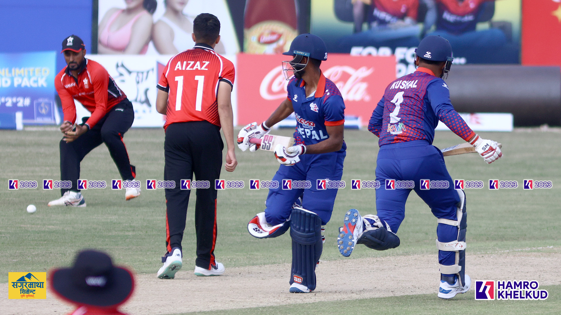 जितको लागि ९५ रनको विजयी लक्ष्य पछ्याएको नेपालले १३.५ ओभरमा ४ विकेट गुमाउँदै पूरा गर्यो । कप्तान रोहित पौडेल २० बलमा १ चौका र २ छक्कासहित २५ रनमा नट आउट रहे । निजाकत खानलाई रोहितले विजयी छक्का प्रहार गरेका थिए ।