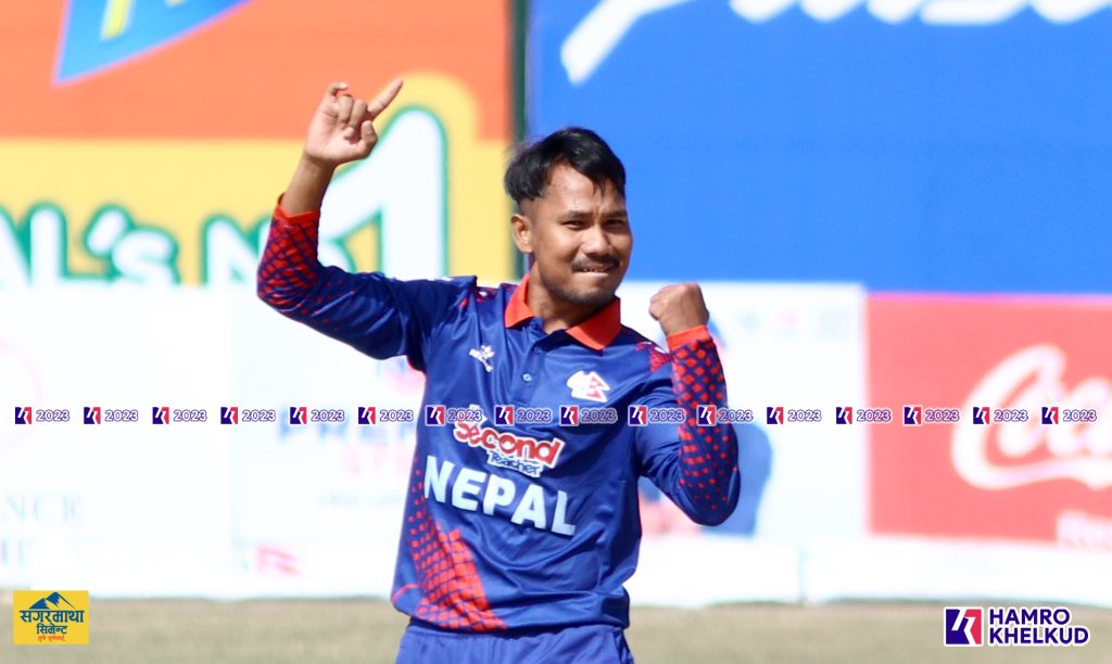 नेपालका लागि सोमपाल कामी, करण केसी र ललित राजवंशीले २-२ विकेट लिए । दीपेन्द्र र डेब्यु गरिरहेका प्रतिशको नाममा १-१ विकेट रह्यो ।