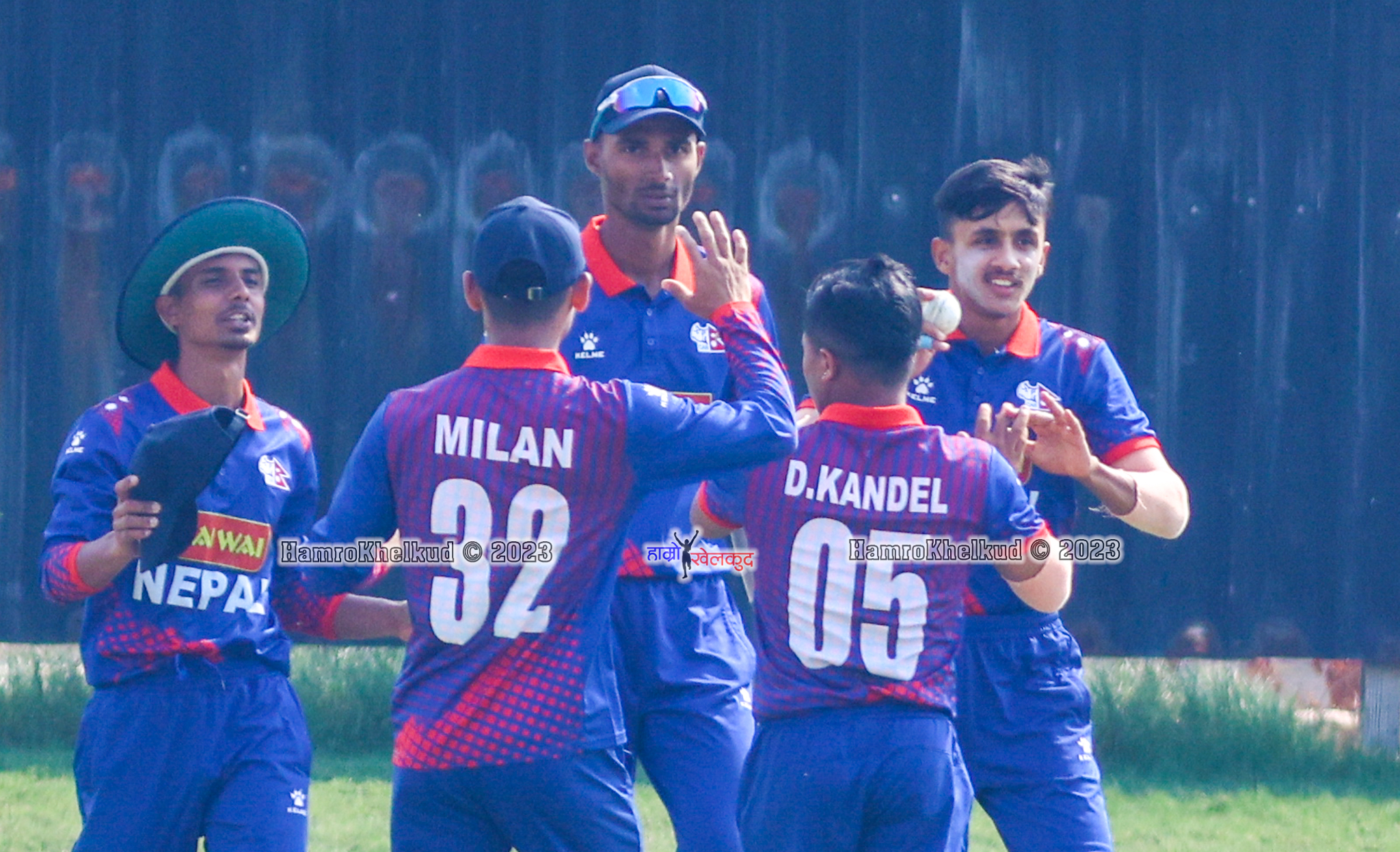 नेपालका लागि हेमन्त धामी र दीपेश कंडेलले ३-३ विकेट लिए । सुभाष भण्डारीले २ र आकाश चन्दले १ विकेट हात पारे ।