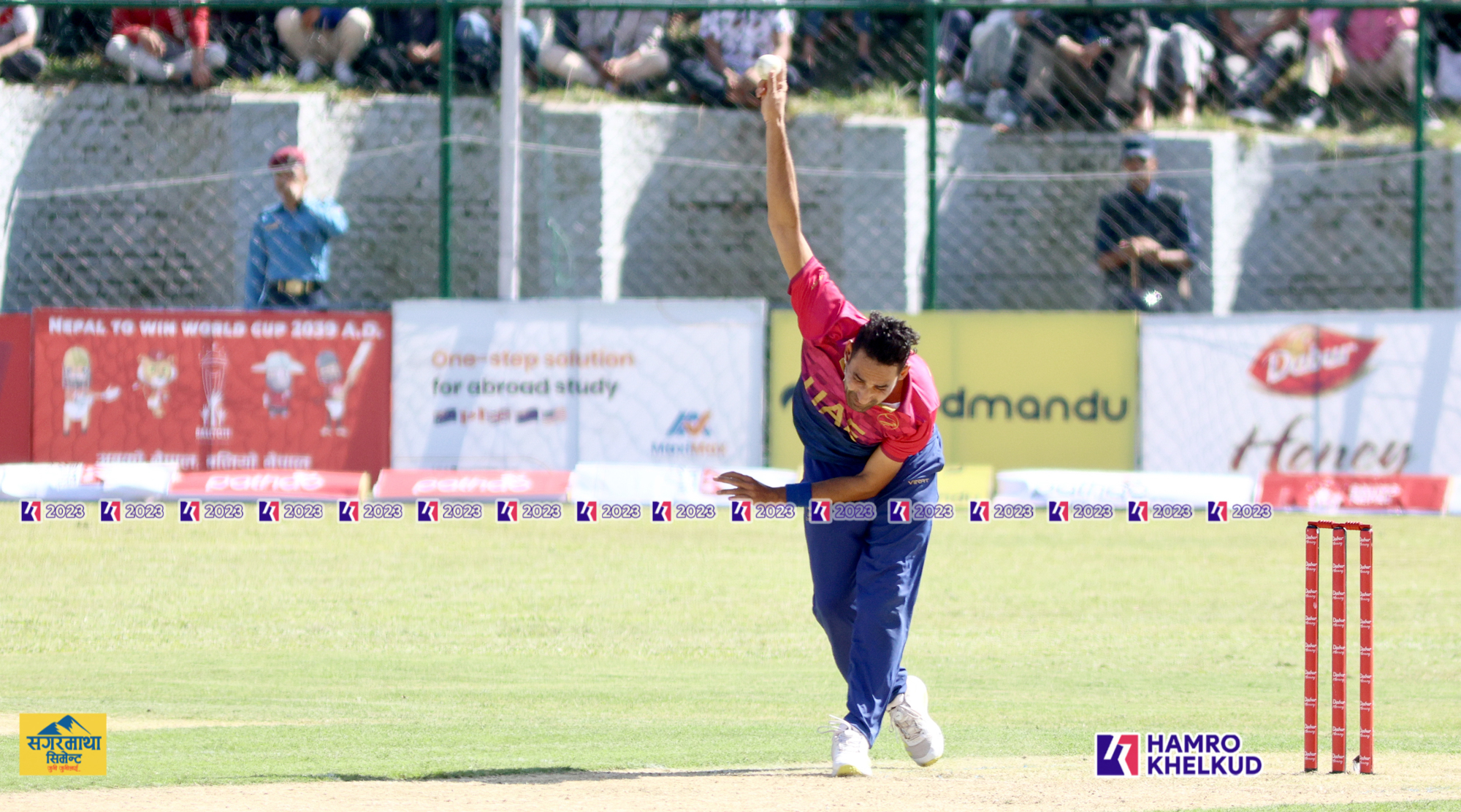 वासिमले २२ बलमा ७ चौका र २ छक्कासहित ४५ रन बनाउँदै सानदार सुरुवात दिलाउनुको साथै टोलीको जित सहज बनाएका थिए । करण केसीको तेस्रो ओभरको चौथो बलमा प्वाइन्टमा कुशल मल्लले मोहम्मद वासिमको ब्यक्तिगत २३ रनमा क्याच छाड्न पुगेका थिए ।