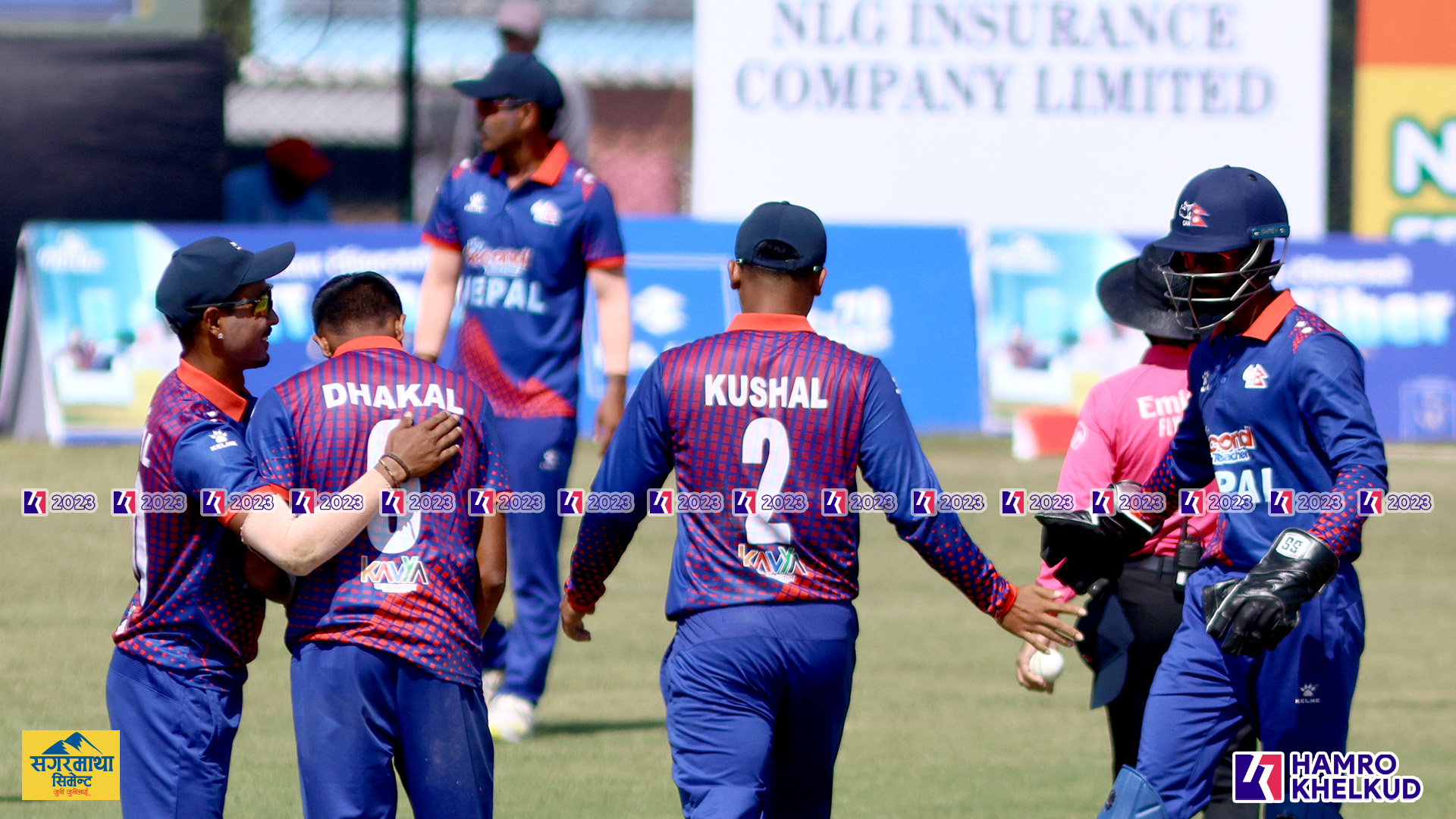 रोहित पौडेल (कप्तान), कुशल भुर्तेल, आसिफ शेख, कुशल मल्ल, दीपेन्द्रसिंह ऐरी, सन्दीप जोरा, गुलशन झा, सोमपाल कामी, करण केसी, अभिनाश बोहरा, प्रतिश जि.सी, विवेक यादव, सन्दीप लामिछाने, ललित राजवंशी र विनोद भण्डारी ।