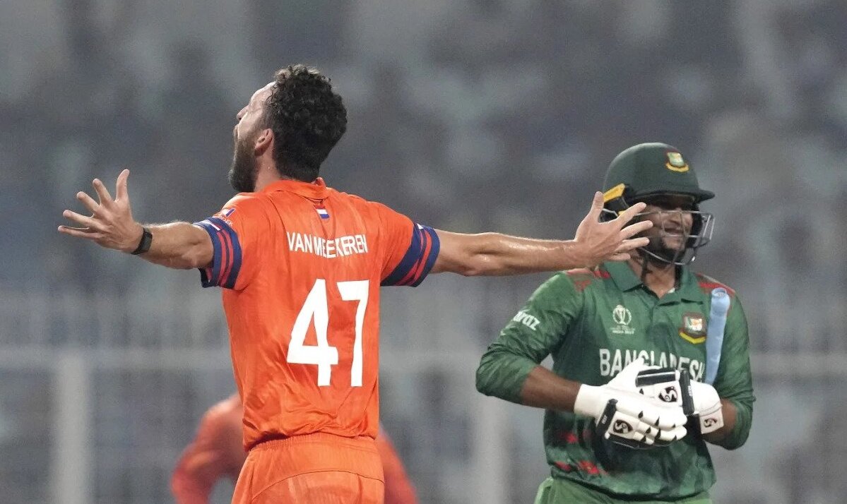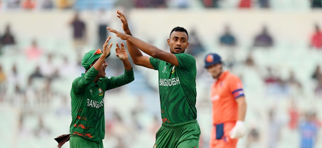 बंगलादेशका शोरिफुल इस्लाम, तस्किन अहमद, मेहेदी हसन र मुश्ताफिजुर रहमानले समान दुई विकेट लिएका थिए । नेदरल्यान्ड्सले यसअघि दक्षिण अफ्रिकालाई ३८ रनले हराएको थियो । नेदरल्यान्ड्स ६ खेलमा २ मा जित र ४ मा हारसहित ४ अंकका साथ आठौं स्थानमा छ ।