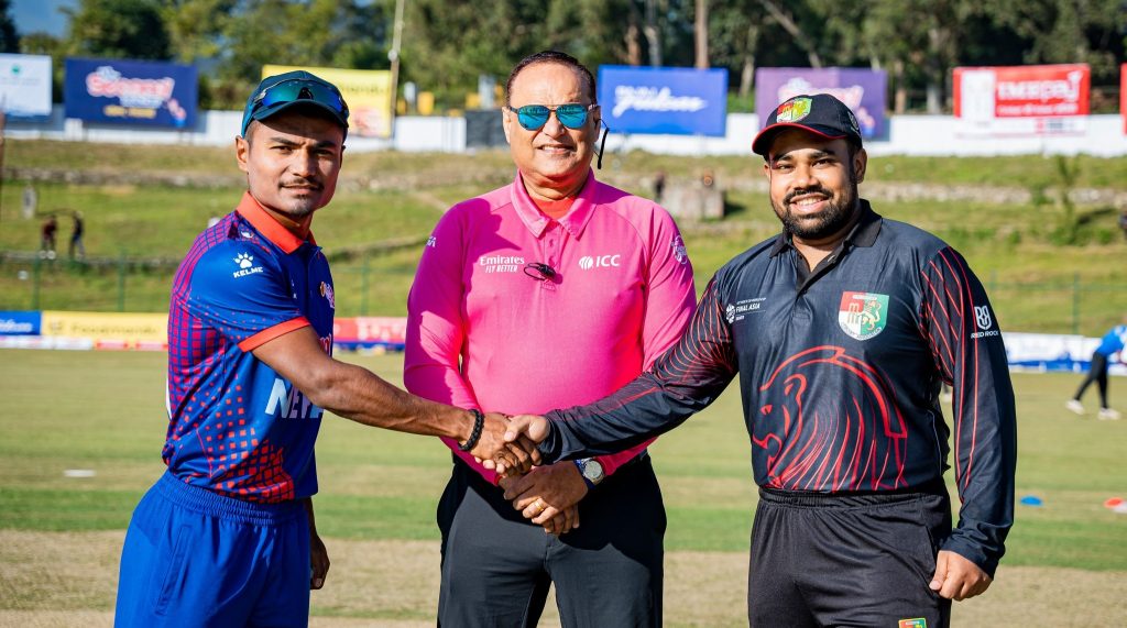 काठमाडौं (हाम्रो खेलकुद) – नेपालले आइसिसी टि२० विश्वकप एसिया फाइनल छनोटमा सिंगापुरविरुद्ध टस हारेको छ। टियु क्रिकेट मैदानमा सिंगापुरका कप्तान अरित्र दत्तले टस जितेर पहिला ब्याटिङ गर्ने निर्णय लिएका छन् । नेपालले फिल्डिङको निम्तो पाएको छ ।