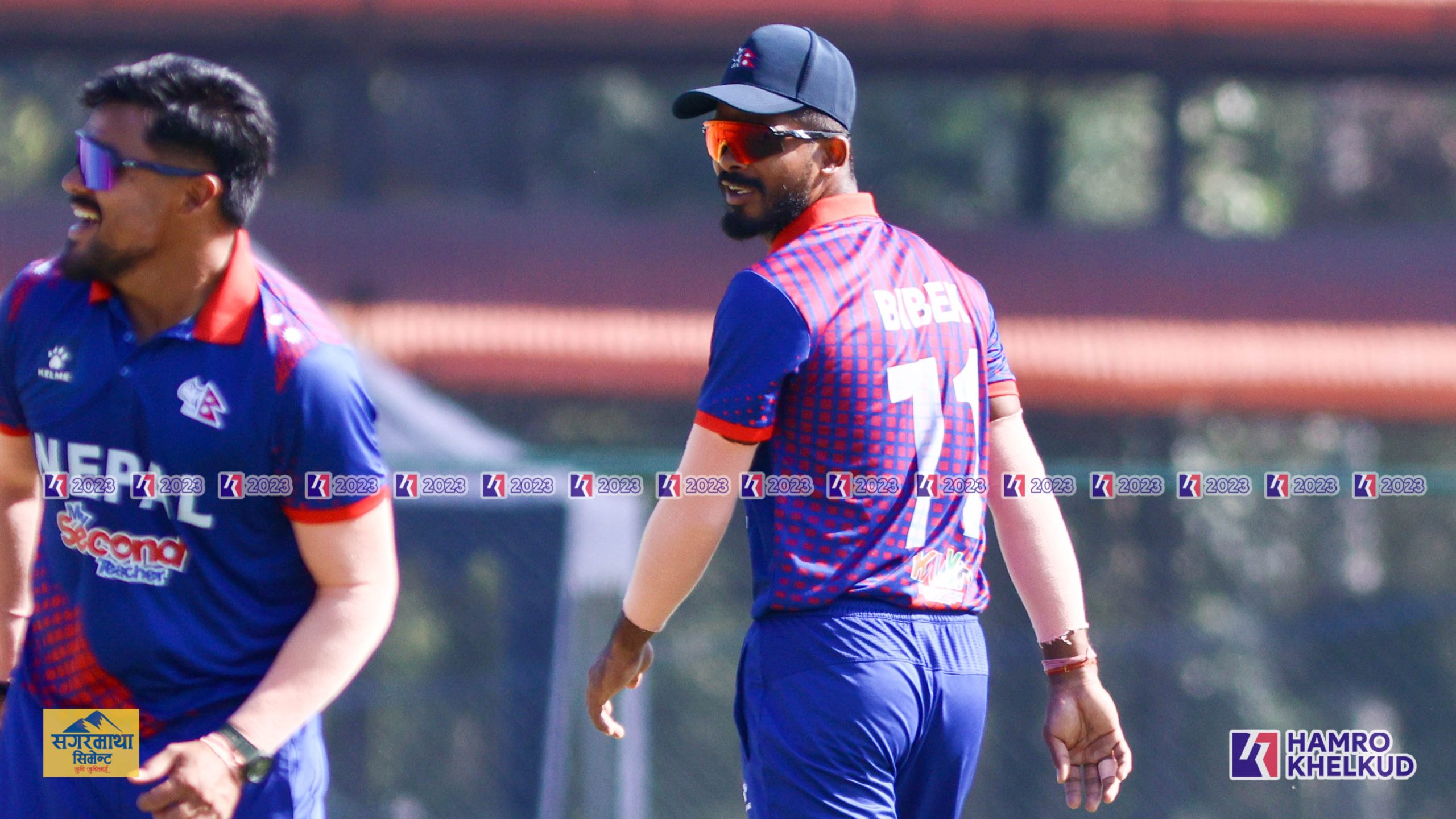 नेपालको प्लेइङ ११ स् आसिफ शेख ९विकेटकिपर०, कुशल भुर्तेल, कुशल मल्ल, रोहित पौडेल ९कप्तान०, विवेक यादव, सन्दीप जोरा, सोमपाल कामी, करण केसी, गुलशन झा, सन्दीप लामिछाने र अभिनाश बोहरा ।