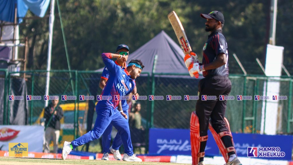 रोहित पौडेल २४ बलमा २ चौका र २ छक्कासहित ३५ रनमा क्रिजमा रहे । पहिलो बल खेलेका कुशल मल्लले छक्का हान्दै खेल सकाएका थिए ।
