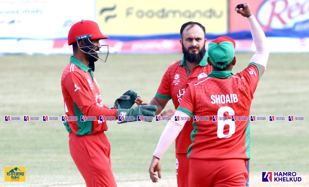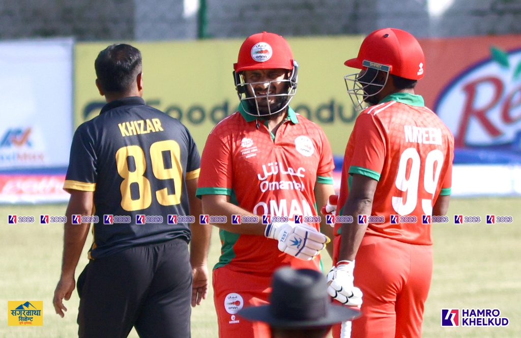 त्यसअघि टियु क्रिकेट मैदानमा टस जितेर पहिला ब्याटिङ रोजेको ओमानले निर्धारित २० ओभरमा ६ विकेट गुमाउँदै १ सय ५३ रन बनाएको थियो । ओमानको जितमा कप्तान जिशान मकसुद ४६ बलमा ५ चौका र २ छक्कासहित सर्वाधिक ५६ रनमा नट आउट रहे । मोहम्मद नदीम ११ बलमा २ चौका र १ छक्कासहित २१ रनमा नट आउट रहे ।