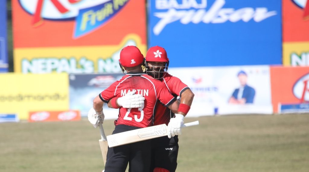 हङकङको जितमा ओपनर मार्टिन कोट्जीले ४८ बलमा १४ चौका र १ छक्कासहित सर्वाधिक ८१ रनको योगदान दिए । पहिलो विकेटका लागि कोट्जी र निजाकत खानले ११.१ ओभरमा १ सय १ रनको शतकीय साझेदारी गरेका थिए । निजाकत खान २४ बलमा २ चौकासहित २५ रनमा क्याच आउट भएपछि रनको गतीमा ब्रेक लागेको थियो ।