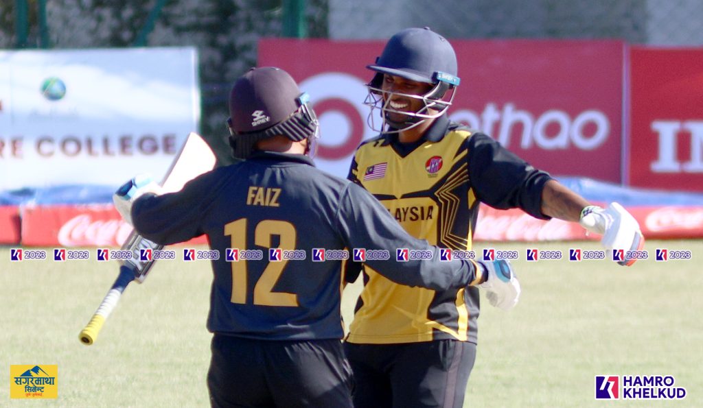 त्यसअघि टियु क्रिकेट मैदानमा टस जितेर पहिला ब्याटिङ रोजेको मलेसियाले निर्धारित २० ओभरमा ४ विकेट गुमाउँदै १ सय ९८ रन बनाएको थियो । मलेसियाको जितमा कप्तान अहमद फैजले ४१ बलमा २ चौका र ६ छक्कासहित सर्वाधिक ७१ रन बनाए । ओपनर सैद अजिज ८ बलमा १ चौकासहित ८ रनमा क्याच आउट भएका थिए ।