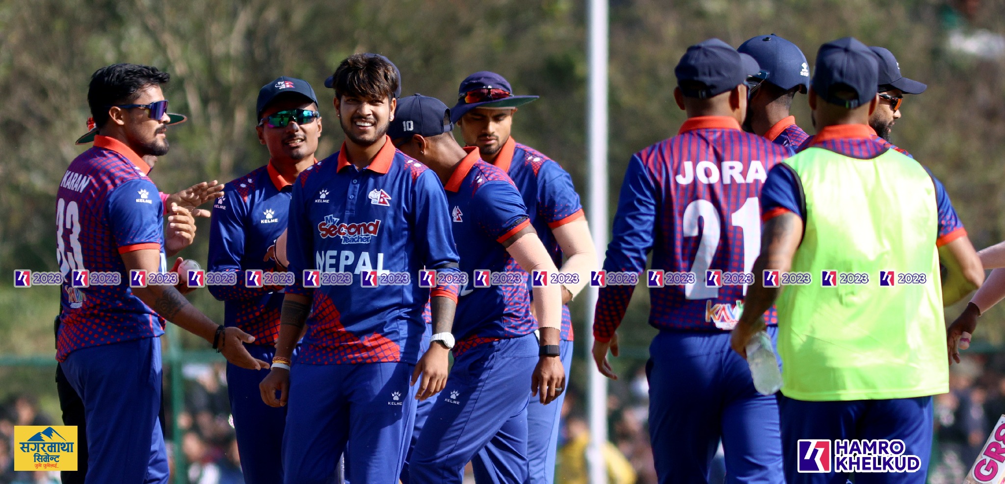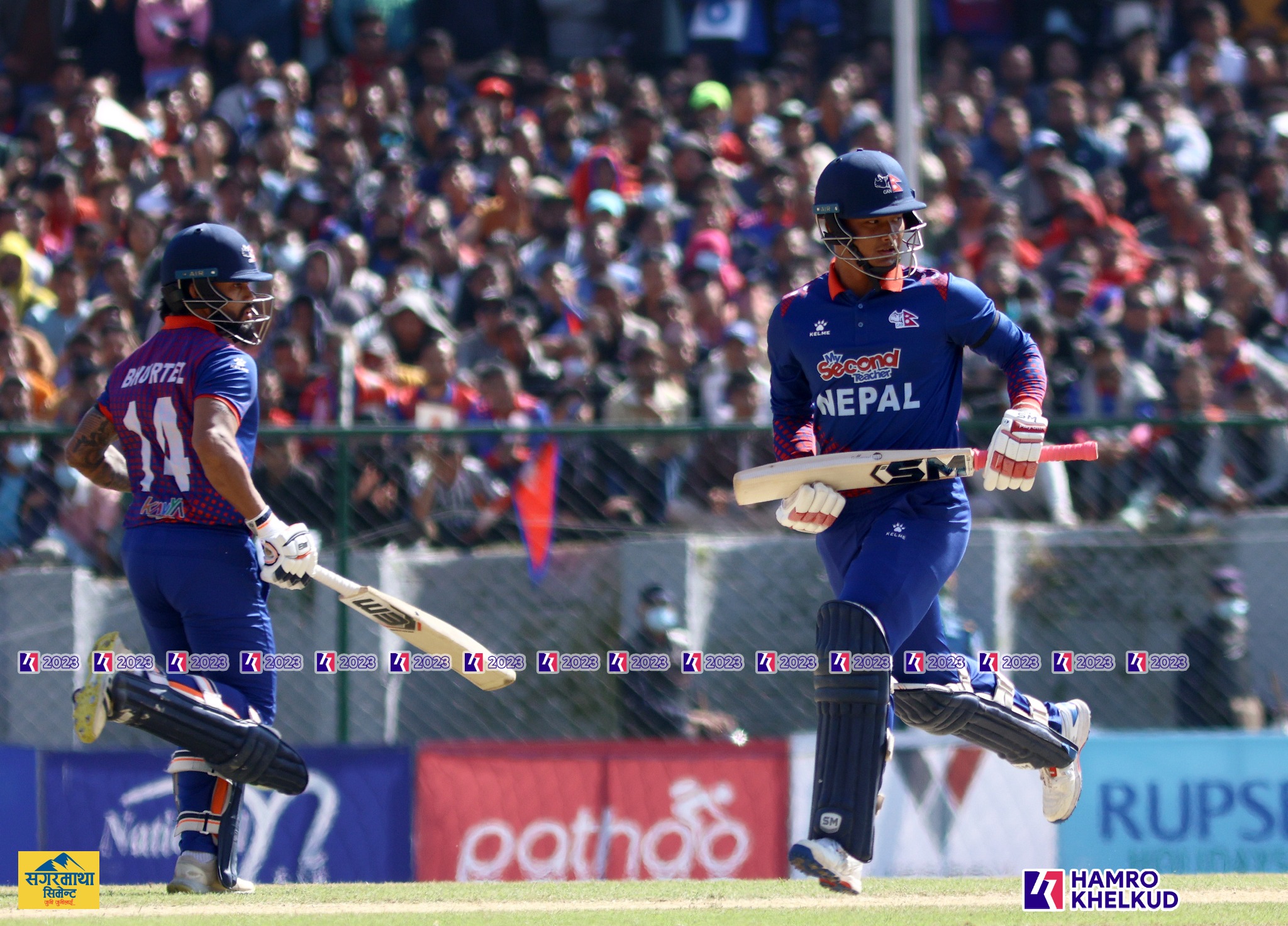 नेपालले टस जितेर रोजेको ब्याटिङ थियो । पहिला ब्याटिङ रोज्नुले विशाल लक्ष्य बनाउने सोच स्पष्ट देखिन्छ । तर सुरुवात नेपालको राम्रो हुन सकेन । सुरुवाती ६० बलमा नेपालले ६० रन बनाउदा प्रमुख चार ब्याटर गुमाएको थियो । नेपालले अन्तिम ७ ओभरमा १ सय १८ रन जोड्दै राम्रो योगफल तयार पारेको थियो ।