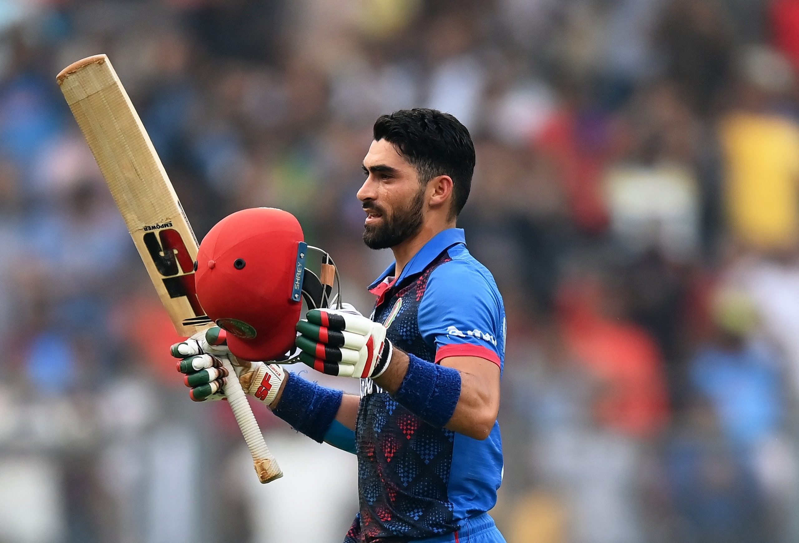 वानखडे स्टेडिम मुम्बईमा टस जितेर पहिला ब्याटिङ रोजेको अफगानिस्तानले निर्धारित ५० ओभरमा ५ विकेट गुमाउँदै २ सय ९१ रन बनायो । अफगानिस्तानका इब्राहिम जद्रान १ सय ४३ बलमा ८ चौका र ३ छक्कासहित सर्वाधिक १ सय २९ रनमा नट आउट रहे । जद्रान विश्वकपमा शतक हान्ने पहिलो अफगानी ब्याटर बनेका छन् ।