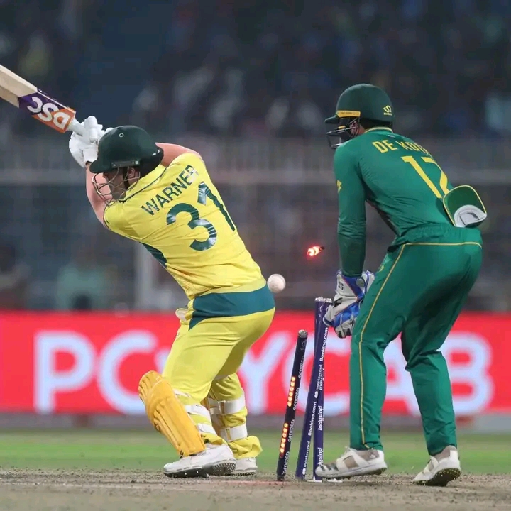 यस विश्वकपमा चार शतक हानेका क्विन्टन डि कक ३ रनमा क्याच आउट भए । जोश हेजलवुडको छैटौं ओभरको चौथो बलमा ठूलो शर्टको धुनमा बल हाइ जादा प्याट कमिन्सले उत्कृष्ट क्याच लिएका थिए ।