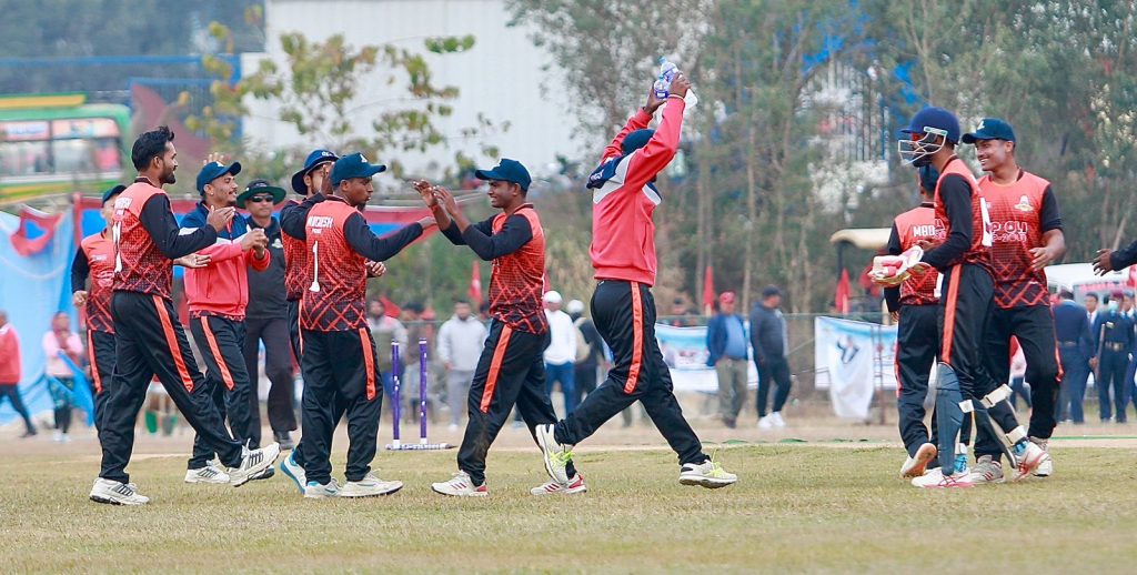 ओपनर हरिशंकर शाह २१ बलमा ३ चौका र २ छक्कासहित २७, अनिलकुमार शाह ६, इमरान शेख ८, पवन सरार्फ ९, मयन यादव ३, हिमान्शु दत्त १४ र विशाल शुश्लिङ १० रनमा आउट भए ।