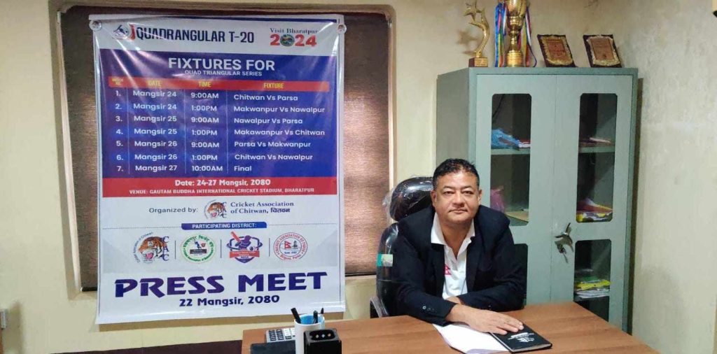 जिल्ला क्रिकेट संघ चितवनले नारायणगढमा पत्रकार सम्मेलन गरी निर्माणाधिन गौतम बुद्ध अन्तर्राष्ट्रिय क्रिकेट रंगशालाको नमुना मैदानमा मंसिर २४ देखी २७ गतेसम्म प्रतियोगिता आयोजना गर्ने जानकारी दिएको हो ।