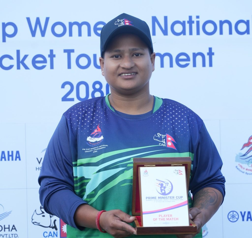 सोनी पाख्रिन ३० बलमा १ चौकासहित १३, यशोदा विष्ट र अश्मिना कर्माचार्य १–१ रनमा आउट भइन् । सलिना सिलवालले १० र विपिशा शाहीले ९ रन बनाइन् ।