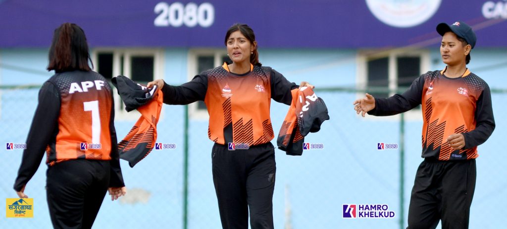 त्यसअघि माथिल्लो मुलपानी क्रिकेट मैदानमा टस हारेर पहिला ब्याटिङको निम्तो पाएको एपिएफले निर्धारित २० ओभरमा ३ विकेट गुमाउँदै १ सय २६ रन बनाएको थियो । एपिएफको जितमा कप्तान सीता रानामगरले ५० बलमा ४ चौकासहित सर्वाधिक ४४ रन बनाइन् ।